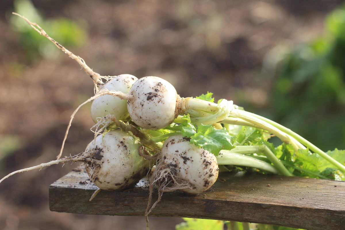 Récolte de carottes, poireaux, navets. | |
