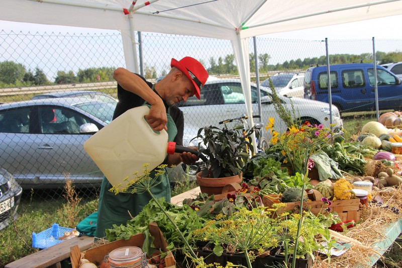 Dans l’après-midi, les jardiniers exposaient leur récolte du jour et concouraient pour l’élection des plus beaux paniers de fruits, fleurs et légumes du jardin. Les conditions climatiques de ce printemps et du début de l’été ayant été très favorables aux cultures dans les potagers, à la condition de passer beaucoup de temps à arroser, les paniers étaient riches et variés. Aubergines, courgettes, concombres, poivrons, tomates côtoyaient haricots, carottes, betteraves, pommes de terre, oignons, mirabelles, pommes et melons. Dahlias, zinnias, verveine, glaïeuls et soleils apportaient leurs touches de couleur.
