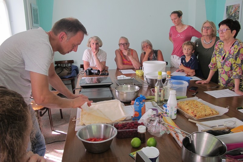 Samedi 8 septembre : "Du jardin à l'assiette", l'animation culinaire de l'AJOS . La séance est animée par Hervé, notre pâtissier qui sait partager sa passion avec les participant(e)s.