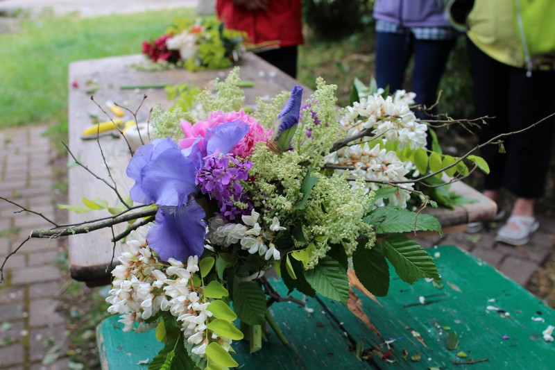 Lundi 14 mai : Animation "Un bouquet de fleurs du jardin" avec les conseils et l'expertise de Christophe, le fleuriste Sélestadien "Boule de mousse". L'animation commence par un petit tour dans nos jardins pour y cueillir des fleurs nombreuses et variées, quelques branches de sureau, de charme ou de lilas.