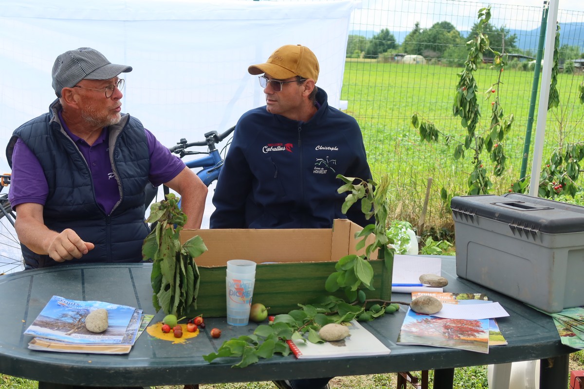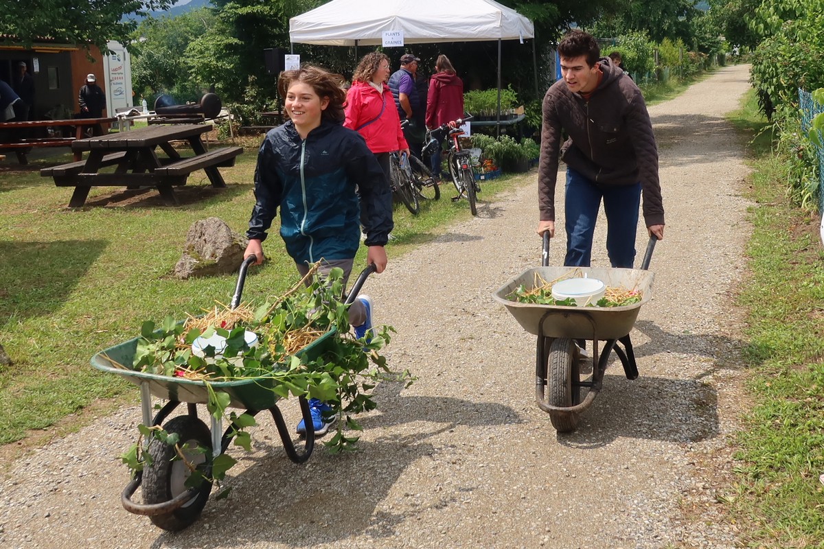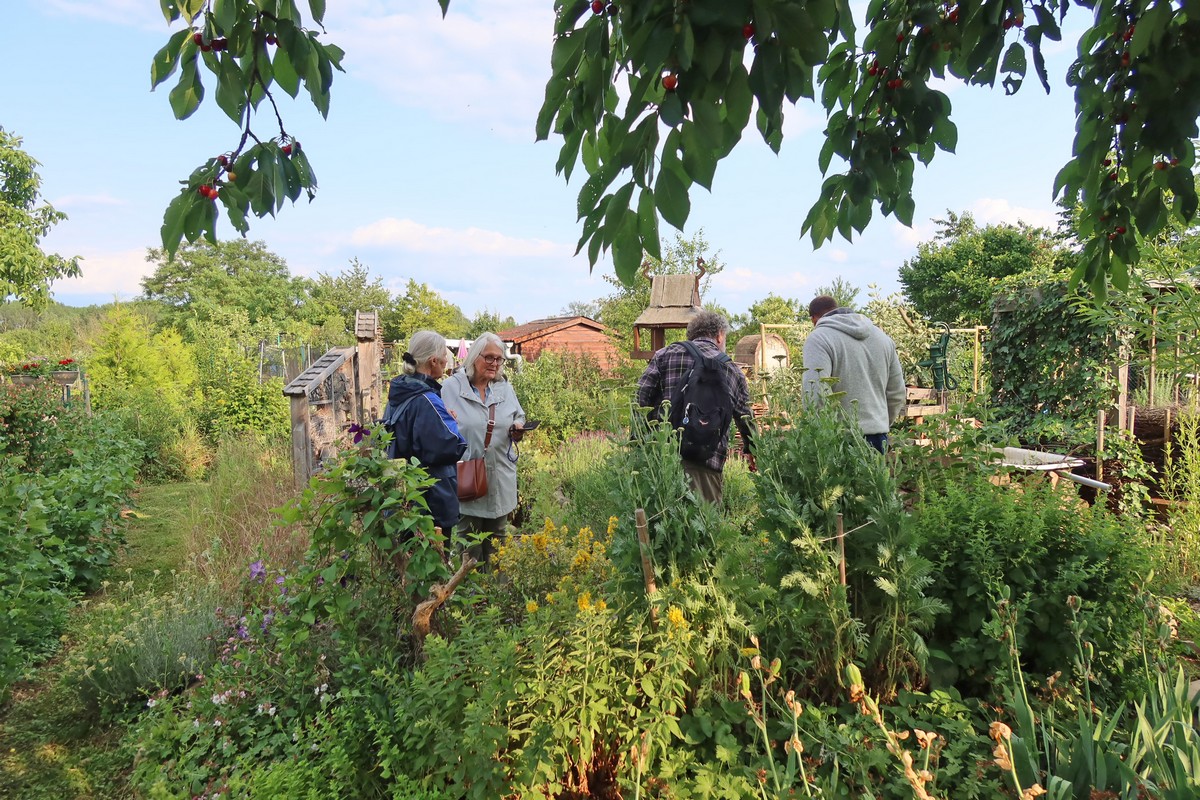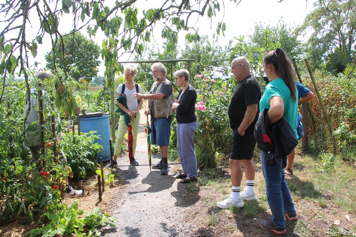 28 juin : Premier des trois après-midi festifs de la saison estivale. L'après-midi débute par l'animation jardinage pratique "1h au jardin". Malgré la canicule, quelques jardinières et jardiniers ont répondu à l'invitation. Petit tour dans le jardin de Didier remis en état après un certain laisser-aller en début de saison, lié aux activités du 100ème anniversaire de l'association. Les dahlias sont en avance par rapport à l'an passé, car ils ont été forcés dans la serre au tout début du printemps. La verveine de Buenos Aires a envahi la planche de fraisier, occasion pour les visiteurs d'en récupérer de jeunes plants. Les oignons, ails et échalotes attendent d'être récoltés, le semis de radis japonais sort de terre, les carottes destinées à être ensilées pour l'hiver sont en train de lever, jouxtant des haricots verts semés en godets et tout juste mis en terre. Sous le cerisier, les semis de choux, de scaroles, chicorées frisées réalisés en mini-mottes tentent de germer malgré les températures caniculaires. Didier évoque l'entretien des tomates et les semis pouvant être effectués en ce début d'été avant de semer en mini-mottes de la chicorée frisée "fine de Louviers". Partage de quelques replants de fleurs, de quelques pieds de sauge décorative avec son feuillage rouge et il est temps de rejoindre le stand où Catherine propose de confectionner de superbes "cartes végétales". Des habitué(e)s, mais également des néophytes composent petits tableaux et marques-pages à partir de pétales de fleurs, brindilles, feuilles. Avec douceur et patience, Catherine guide, suggère, encourage. Les réalisations sont glissées bien à l'abri dans des enveloppes par les participant(e)s ravi(e)s par cette animation. Déjà les premiers paniers sont sur le présentoir pour le concours "Fleurs, fruits et légumes du jardin". 18h, vient le moment de la désignation des plus beaux d'entre eux. Samantha et Thomas BONNET, Marguerite et Alfred STOCK, Alice WITTMER, Fahid HODZIC sont récompensés par des bons d'achat de 15€ offert par le maraicher sélestadien "Le jardinier", bld de Nancy. Jardiniers et jardinières peuvent maintenant se restaurer. Roland et Raymond proposent saucisses blanches ou merguez grillées au barbecue par Gérard, Christiane et Patrick tiennent le stand café-pâtisseries-glaces, tandis que Jean-Paul tient la buvette, très fréquentée et que Fabrice et Valentin assurent l’approvisionnement. Un léger souffle d'air sur l'air de loisirs du Galgenfeld adoucit les températures caniculaires, permettant de terminer un bel après-midi dans la convivialité. Rendez-vous est donné le 26 juillet pour le second après-midi festif de la saison 2025.