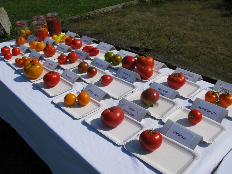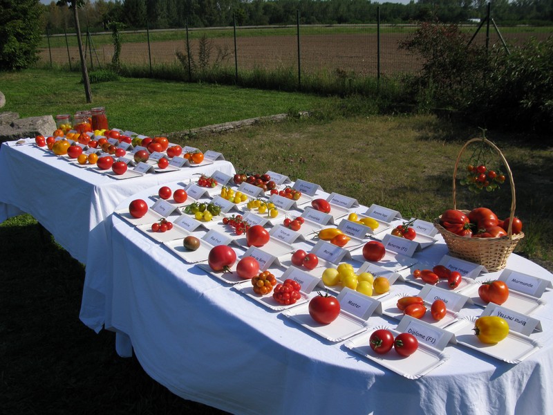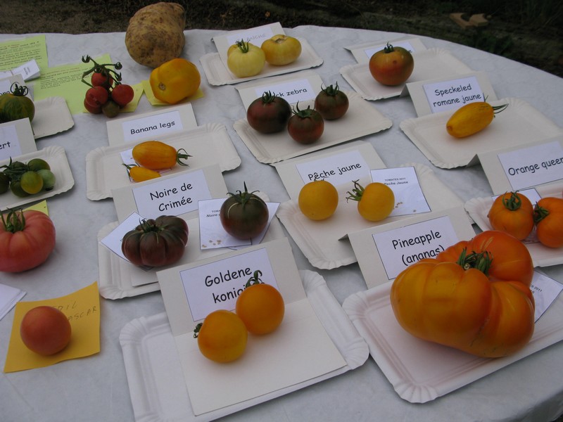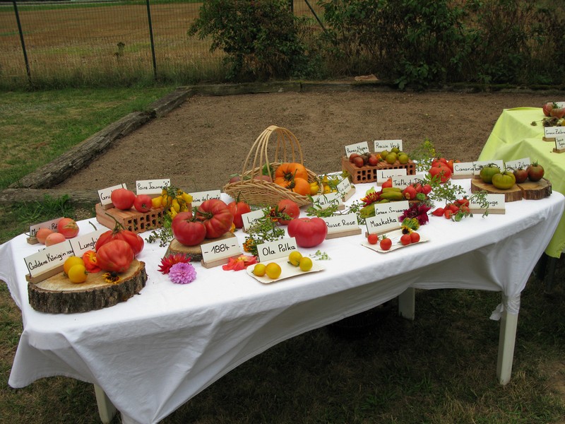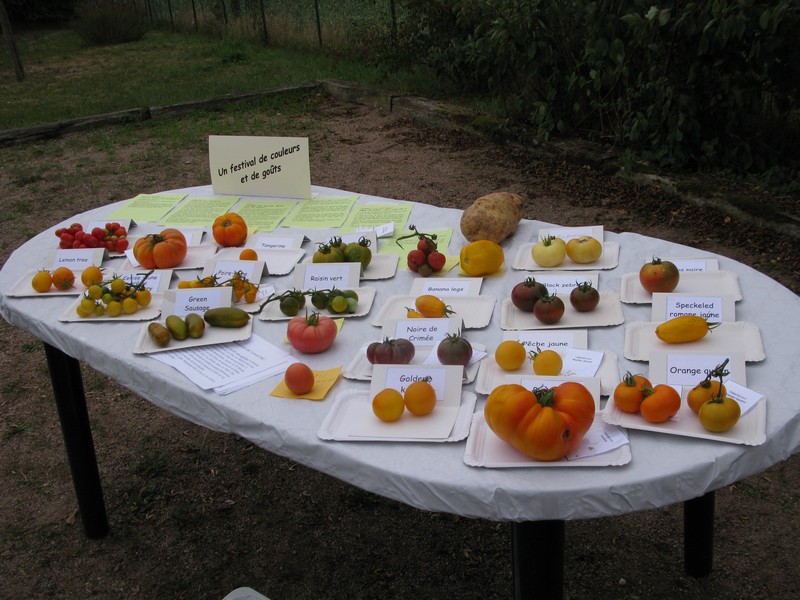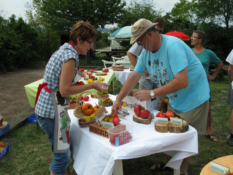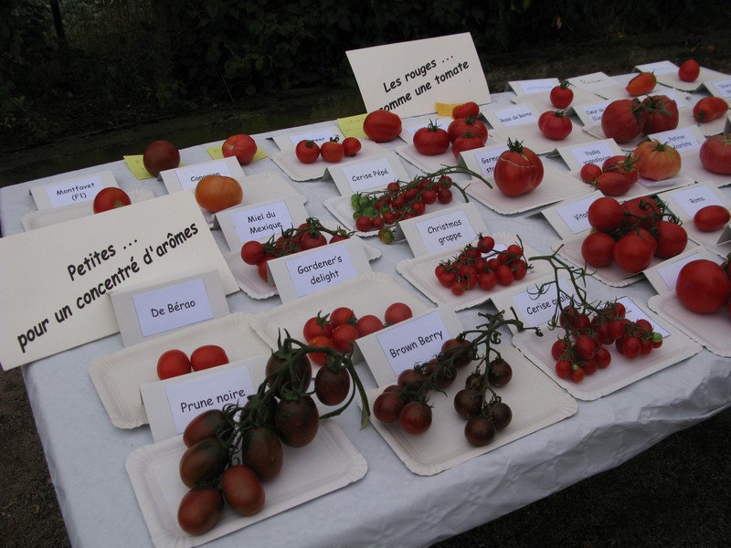 Comme les années prédédentes, l'exposition a été l'occasion d'échanges de tomates pour reproduire les variétés, ainsi que de discussions sur la qualité gustative de telle ou telle variété.