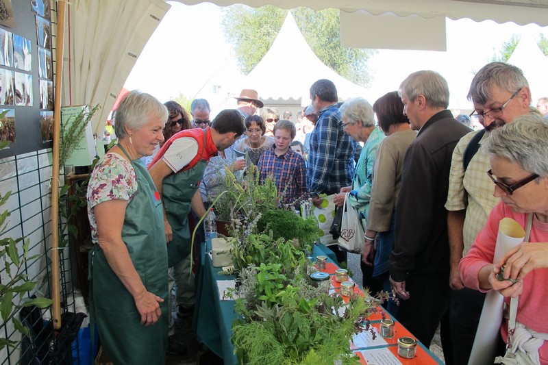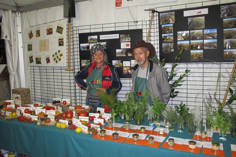 Sur notre stand, pour promouvoir nos jardins, nous présentions des légumes, bien sûr, mais également des herbes aromatiques. Ainsi concombre Empereur Alexandre, concombre citon, concombre asiatique et concombre du Kenya volaient-il la vedette au concombre maraîcher traditionnel, tandis qu'au stand herbes aromatiques les visiteurs étaient invités à excercer leur odorat pour identifier différents basilics, la verveine ou encore la tanaisie crispée. Une exposition de tomates présentant 43 variétés donnait de la couleur au stand et invitait les visiteurs à diversifier leurs plants de tomates en leur proposant des graines. Les papilles gustatives n'étaient pas oubliées, puisqu'étaient proposés, sirops et cocktails sans alcool préparés à partir de plantes du jardin. Le beau temps, un public nombreux et intéressé, des bénévoles motivés pour tenir le stand durant ces 3 jours, tout était là pour un salon réussi.