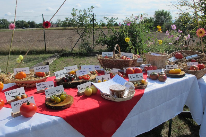 Dans l’après-midi, les jardiniers de l’AJOS exposaient leur récolte du jour et concouraient pour l’élection des plus beaux paniers de fruits, fleurs et légumes du jardin. Les paniers étaient riches et variés. Courgettes, concombres, poivrons, tomates côtoyaient carottes, betteraves, pommes de terre, oignons. Mûres, lavatères et dahlias apportaient leurs touches de couleur. Olivier LUMANN, Patrick et Éliane TASSIN, Christiane DANTZER, ainsi que Marguerite et Alfred STOCK ont été récompensés par un bon d’achat de 15€ à valoir chez un maraîcher sélestadien. Voir la page consacrée à ce concours.