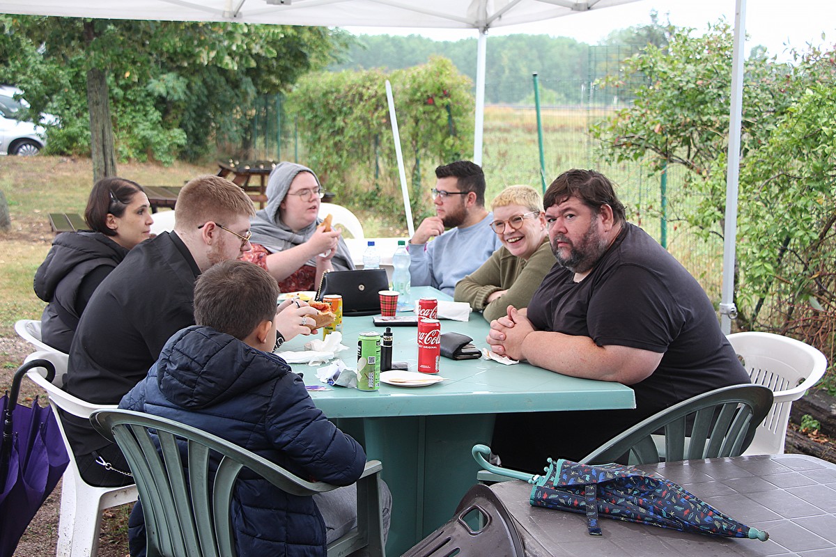 26 juillet : Second des trois après-midi festifs de la saison estivale. Le temps est à l'orage, nous attendons la pluie depuis des semaines, les jardins sont très secs et l'arrosage devient une corvée. Vers 13h30, des trombes d'eau s'abattent sur la ville, puis la pluie cesse pour 14h. Les premiers jardiniers et jardinières arrivent pour l'animation jardinage "1h au jardin" qui débute avec un petit quart d'heure de retard. Seule, la visite du jardin de Didier est au programme, le ciel reste menaçant. Petit tour du jardin en distillant quelques conseils sur la culture des dahlias, des melons, des haricots ou des tomates, repiquage de replants de poireaux, entretien des fraisiers et préparation des replants à partir des stolons, distribution de replants de verveine de Buenos Aires, l'ambiance est conviviale et le temps file. Reste à évoquer rapidement la taille des framboisiers avant de se réfugier sous les tonnelles de l'aire de loisirs. Il est presque 16h, l'heure de déguster l'une des pâtisseries proposées par Christiane et Patrick. Les premiers paniers du concours tarderont à arriver, les jardiniers et jardinières devant composer avec les nombreuses averses. 18h30, vient le moment de la désignation des plus beaux paniers. Fabrice UTTARD (A137), Patrick TASSIN (A35), Emmanuel KEMPF (A39) et Alice WITTEMER (B49) sont récompensés par des bons d'achat de 15€ offert par le maraicher sélestadien "Le jardinier", bld de Nancy. Gérard parvient à cuire merguez et saucisses blanches... à l'abri du store pour satisfaire l'appétit des membres qui ont bravé la pluie. Les tonnelles sont fort utiles et permettent de se retrouver entre amis ou en famille autour d'une table jusqu'à presque 20h. Rendez-vous est donné le 30 août pour le dernier après-midi festif de la saison 2025.