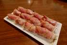 Couper aux ciseaux les lanières de choucroute et diviser chaque tranche de jambon en deux. Mélanger la vinaigrette avec la choucroute, ajouter amandes grillées. Répartir la préparation sur les demi-tranches de jambon et rouler.