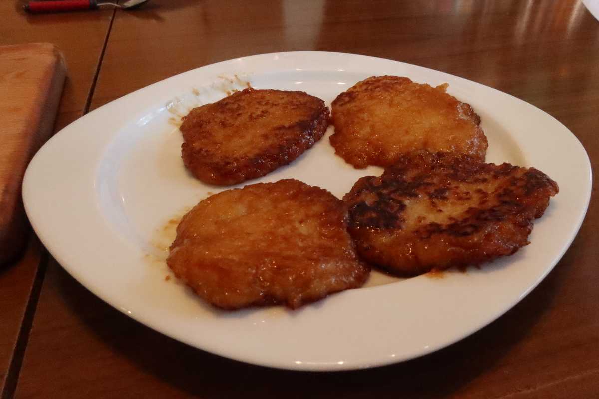 Verser l’huile de sésame dans une poêle chauffée. Y déposer le mélange précédent coupé en quatre parties égales. Faire revenir jusqu’à ce que cela soit doré des deux côtés.