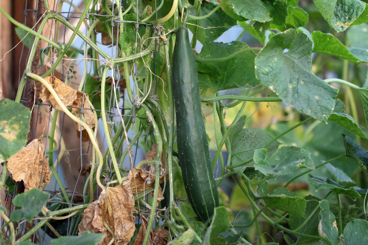 25-11-203 - Concombre "Burpless tasty green" récolté dans la serre, après la première gelée sérieuse (-4°C)