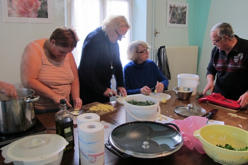 Samedi 4 novembre : Dernière animation culinaire "Du jardin à l'assiette" de la saison 2017. Seconde séance autour du thème "Cuisine d'ailleurs". Au menu proposé par Artur, des plats portuguais : Caldo verde, une soupe au chou, morue à la Bràs et beignets de courge de Siam.