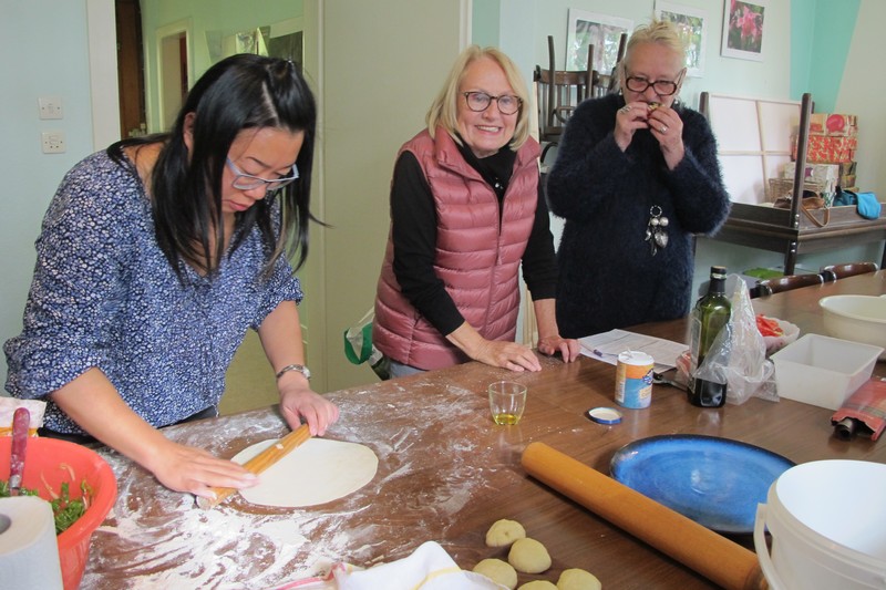 Samedi 7 octobre : l'animation culinaire "Du jardin à l'assiette". Première séance autour du thème "Cuisine d'ailleurs". Au menu proposé par Zarife, des plats turcs : börek et ezmé. Fraichement cueillis au jardin, feuilles de bette, tomates, oignons, poivrons et piments, garnissaient de fines galettes. Un régal pour nos papilles peu habituées aux plats épicés.