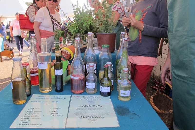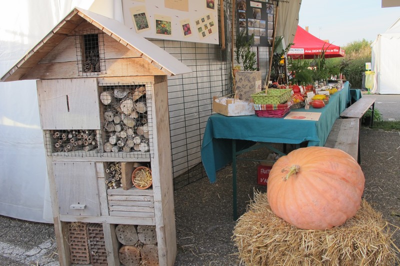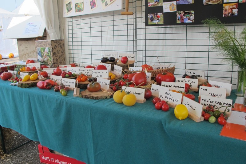 Sur notre stand, pour promouvoir nos jardins, nous présentions des légumes, bien sûr, mais également des herbes aromatiques. Ainsi concombre Empereur Alexandre, concombre citon, concombre asiatique et concombre du Kenya volaient-il la vedette au concombre maraîcher traditionnel, tandis qu'au stand herbes aromatiques les visiteurs étaient invités à excercer leur odorat pour identifier différents basilics, la verveine ou encore la tanaisie crispée. Une exposition de tomates présentant 43 variétés donnait de la couleur au stand et invitait les visiteurs à diversifier leurs plants de tomates en leur proposant des graines. Les papilles gustatives n'étaient pas oubliées, puisqu'étaient proposés, sirops et cocktails sans alcool préparés à partir de plantes du jardin. Le beau temps, un public nombreux et intéressé, des bénévoles motivés pour tenir le stand durant ces 3 jours, tout était là pour un salon réussi.