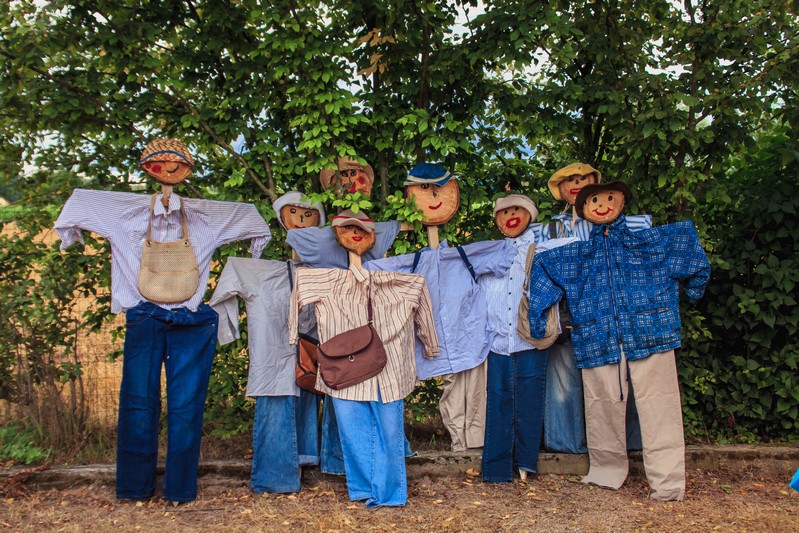 À partir de 15 heures jeunes et … moins jeunes étaient invités à confectionner des épouvantails avec l’aide d’Isabelle, Christiane, Jérôme et Gérard. Vieux chapeaux, chemises hors d’âge, pantalons rapiécés ont donné vie à ces gardiens du potager qui, après l’exposition, ont trouvé leur place dans les jardins de l’AJOS.