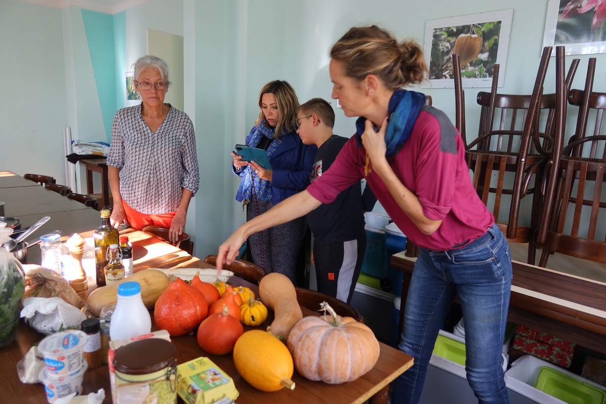 Samedi 10 novembre : "Du jardin à l'assiette", l'animation culinaire de l'AJOS, avec pour thème, les courges. La séance est animée par Hervé, Sylvie et Isabelle. Au menu : Tarte d'automne à la butternut, pain d'épice au potimarron, pavé de butternut au chocolat, gâteau roulé au potimarron et sa crème au citron.
