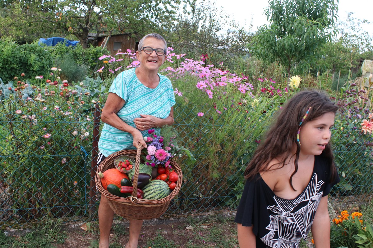 Dans l’après-midi, les jardiniers exposaient leur récolte du jour et concouraient pour l’élection des plus beaux paniers de fruits, fleurs et légumes du jardin. Tomates, courgettes, poivrons, aubergines, concombres, haricots, betteraves, carottes, melons, potimarrons et courges Butternut, pêches et pommes, reines-marguerites et immortelles remplissaient les paniers, preuve de la grande diversité des légumes cultivés dans les jardins de l'AJOS.