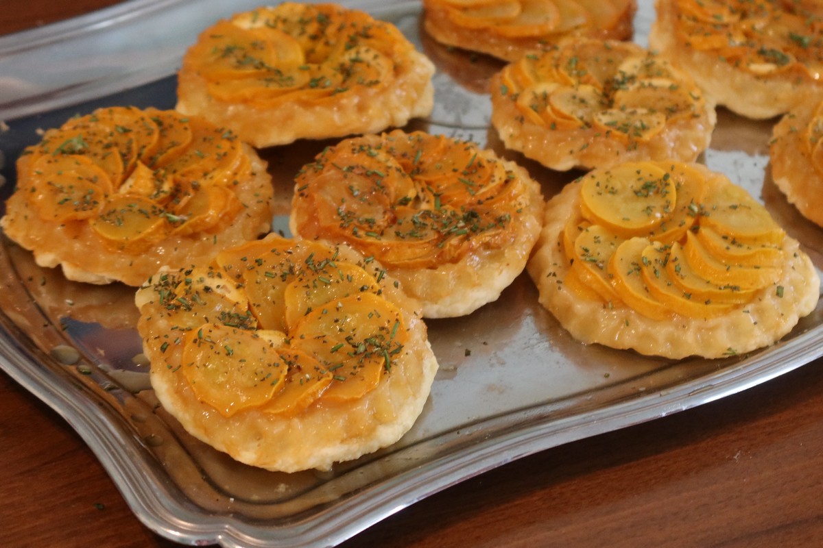 Au menu Glace tomate-basilic, rouleaux de poulet sur lit de quetsches d'Alsace et tarte vigneronne.