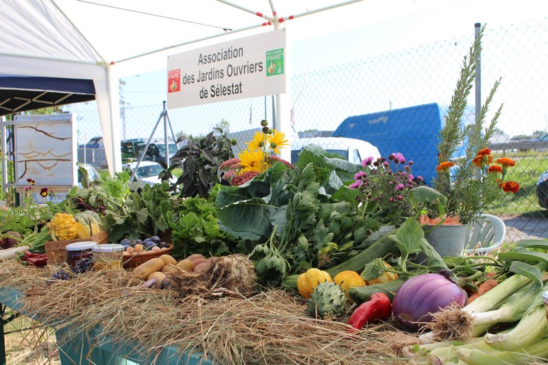 Dans l’après-midi, les jardiniers exposaient leur récolte du jour et concouraient pour l’élection des plus beaux paniers de fruits, fleurs et légumes du jardin. Les conditions climatiques de ce printemps et du début de l’été ayant été très favorables aux cultures dans les potagers, à la condition de passer beaucoup de temps à arroser, les paniers étaient riches et variés. Aubergines, courgettes, concombres, poivrons, tomates côtoyaient haricots, carottes, betteraves, pommes de terre, oignons, mirabelles, pommes et melons. Dahlias, zinnias, verveine, glaïeuls et soleils apportaient leurs touches de couleur.