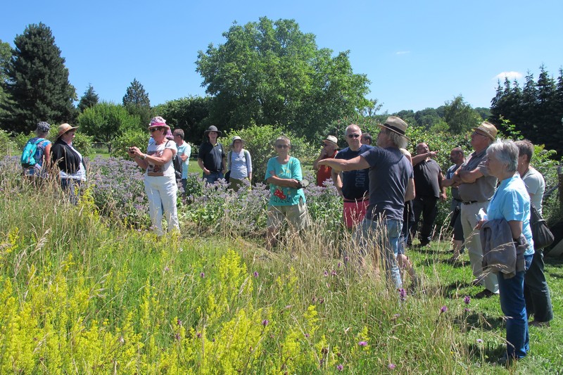 Dès 14h, rendez-vous était donné pour l’animation jardinage « 1h au jardin ». Au programme, la visite de 2 jardins et bien sûr, des conseils de jardinage. Christiane présentait son grand (5 ares) et joli jardin où se côtoient dans une belle harmonie fleurs et superbes légumes. Cosmos, dahlias, zinnias, hibiscus, bégonias, rosiers et passiflore apportaient leurs notes fleuries au jardin et donnaient bel aspect à l’abri au fond du jardin. Coté légumes, tomates, poivrons, piments et aubergines étaient prêts à être cueillis pour confectionner la ratatouille, les pommes de terre terminaient de murir, les haricots donnaient à profusion tandis qu’un joli pied d’artichaut pointait au fond du jardin, ou que poireaux et céleris attendaient l’automne pour être récoltés.
