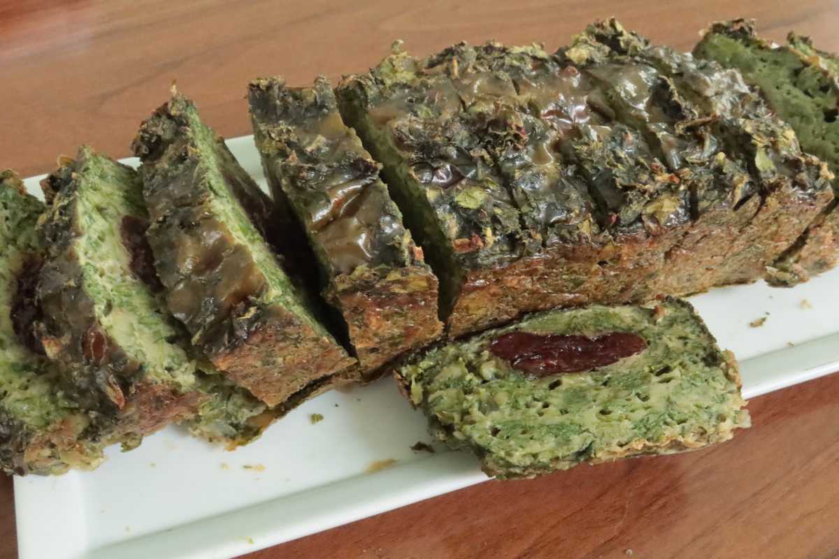 Ajouter le hachis de feuilles et verser dans un moule à cake huilé.