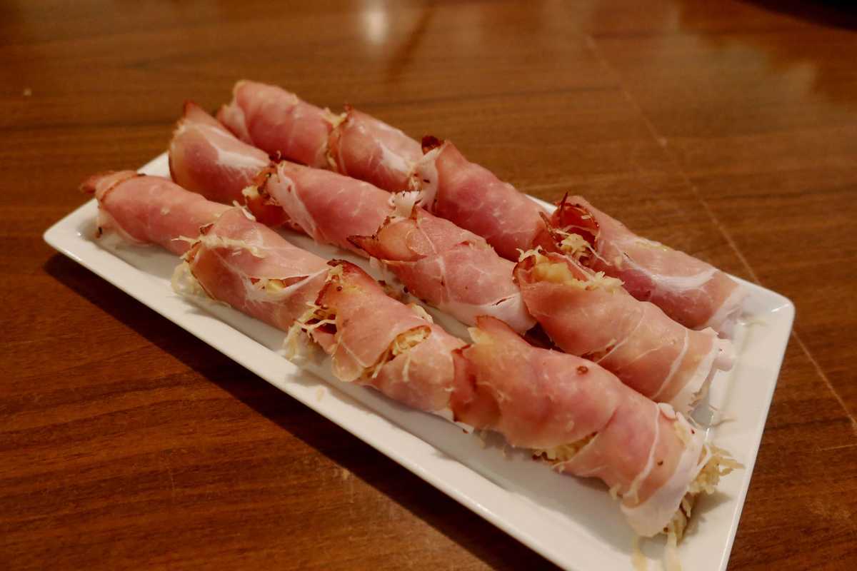 Disposer les roulés de choucroute sur une salade de jeunes pousses.