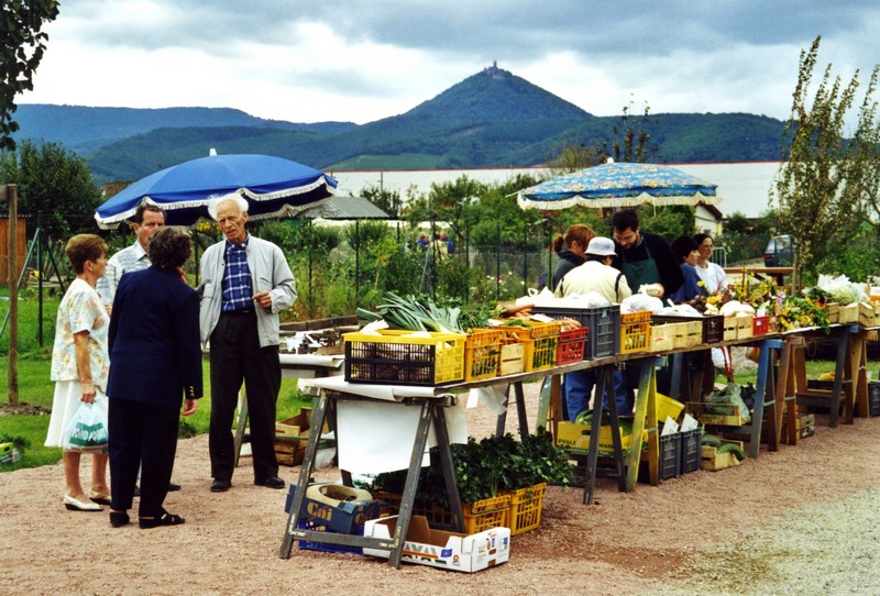 - Marché aux légumes sur la nouvelle aire de loisirs (voir la photo). Le produit de la vente des légumes issus des 3 sites de jardins (2180F soit 410€ de 2012) est intégralement reversé au C.C.A.S (Centre Communal d’Action Sociale).