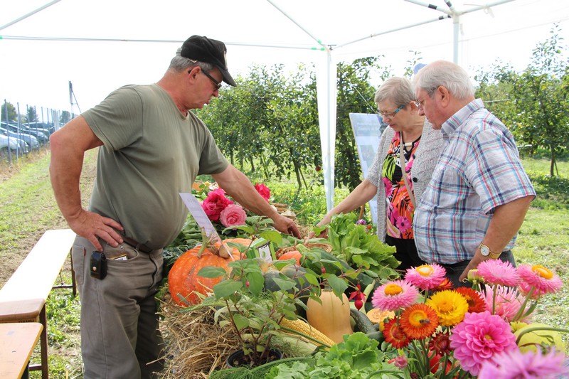 | Dimanche 14 septembre 2014, l'AJOS exposait les productions de nos jardins à l'occasion de la journée "Portes ouvertes" au verger école de Sélestat. | ||