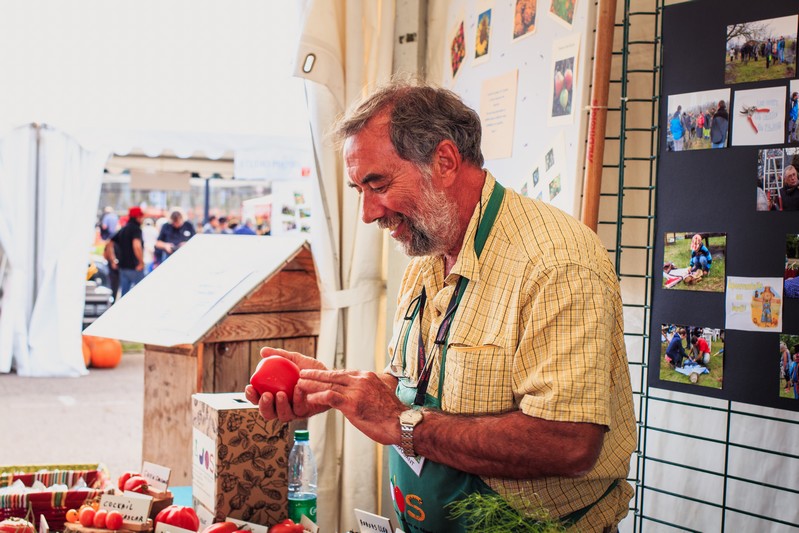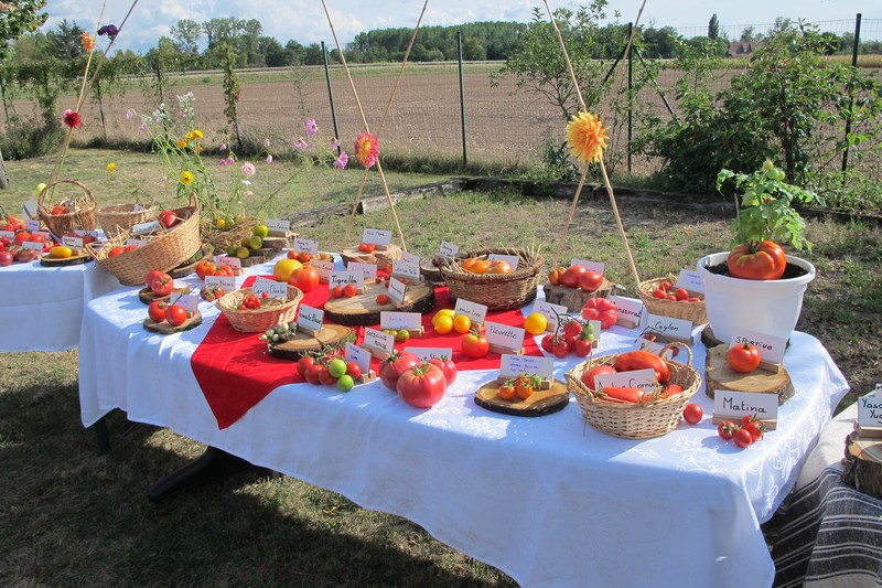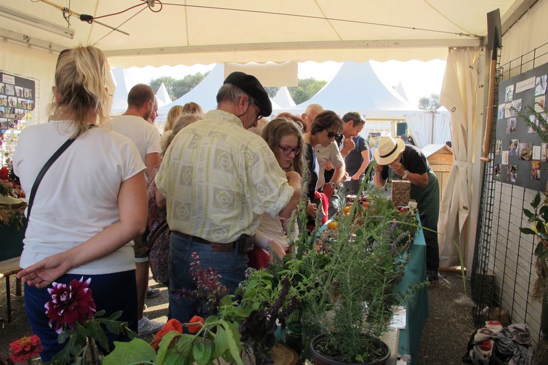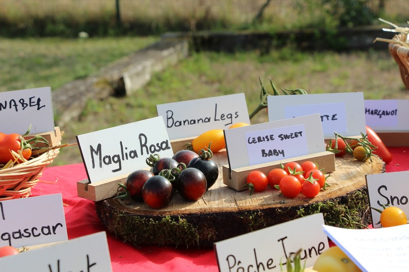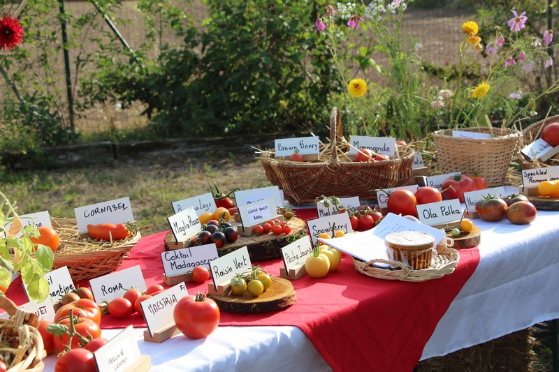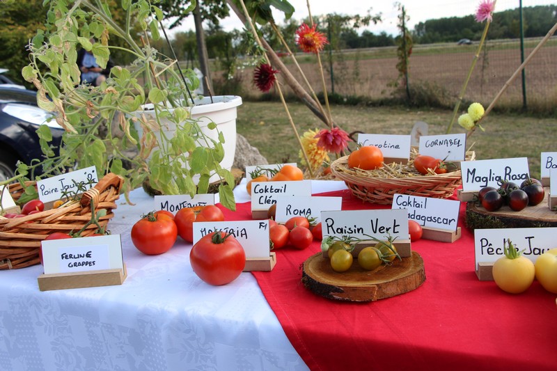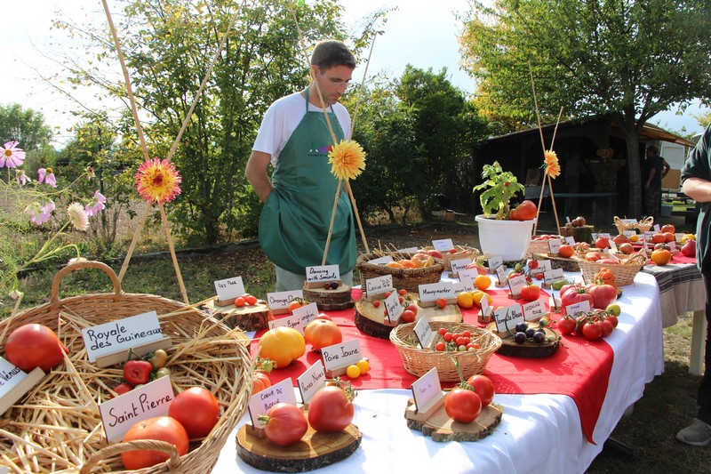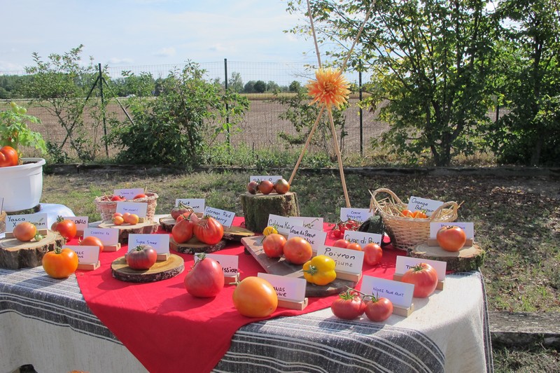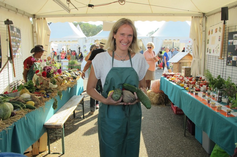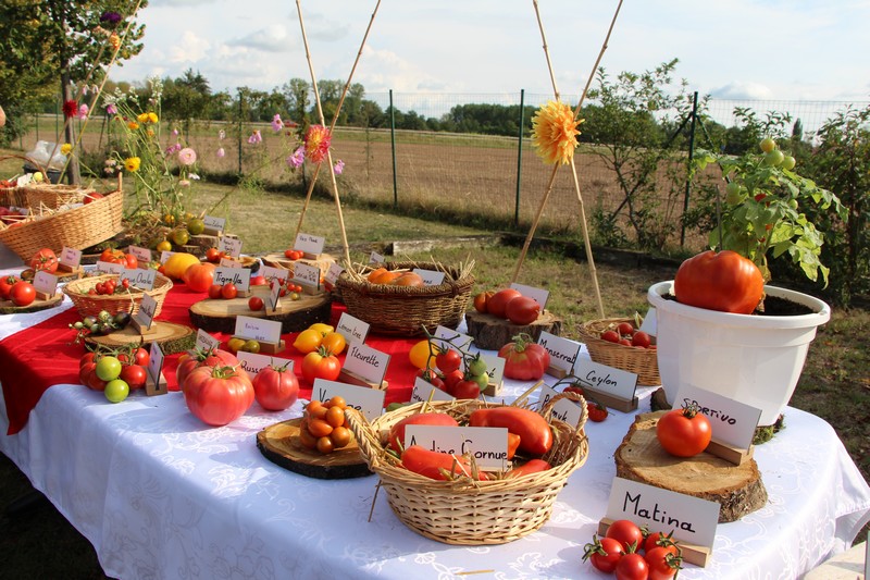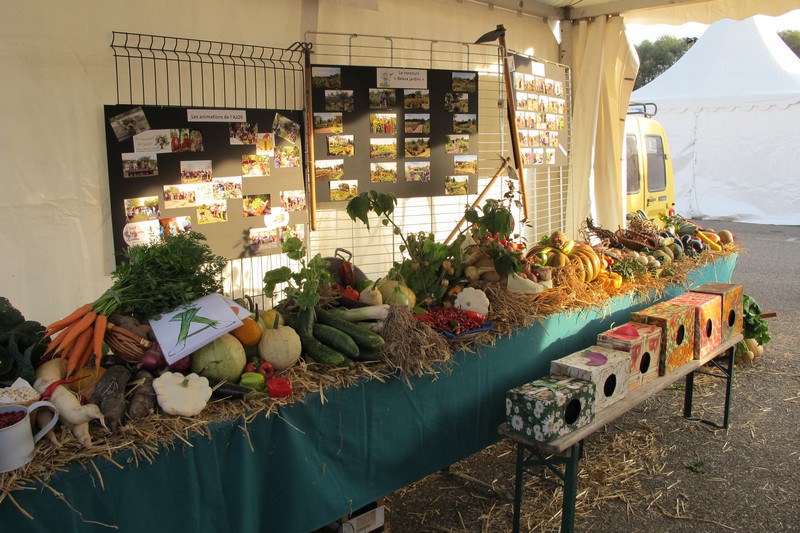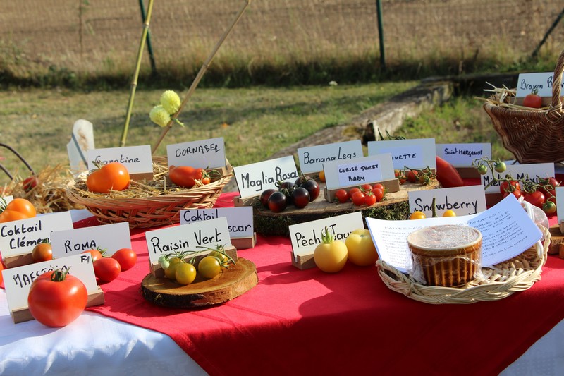 Sur notre stand, pour promouvoir nos jardins, nous présentions des légumes, bien sûr, mais également des herbes aromatiques. Ainsi concombre Empereur Alexandre, concombre citon, concombre asiatique et concombre du Kenya volaient-il la vedette au concombre maraîcher traditionnel, tandis qu'au stand herbes aromatiques les visiteurs étaient invités à excercer leur odorat pour identifier différents basilics, la verveine ou encore la tanaisie crispée. Une exposition de tomates présentant 43 variétés donnait de la couleur au stand et invitait les visiteurs à diversifier leurs plants de tomates en leur proposant des graines. Les papilles gustatives n'étaient pas oubliées, puisqu'étaient proposés, sirops et cocktails sans alcool préparés à partir de plantes du jardin. Le beau temps, un public nombreux et intéressé, des bénévoles motivés pour tenir le stand durant ces 3 jours, tout était là pour un salon réussi.