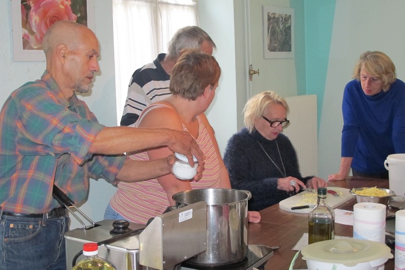 Samedi 4 novembre : Dernière animation culinaire "Du jardin à l'assiette" de la saison 2017. Seconde séance autour du thème "Cuisine d'ailleurs". Au menu proposé par Artur, des plats portuguais : Caldo verde, une soupe au chou, morue à la Bràs et beignets de courge de Siam.