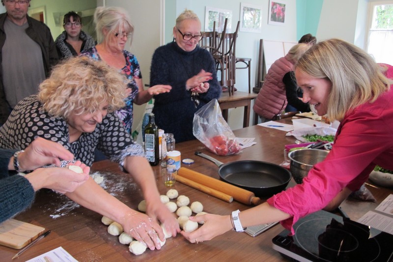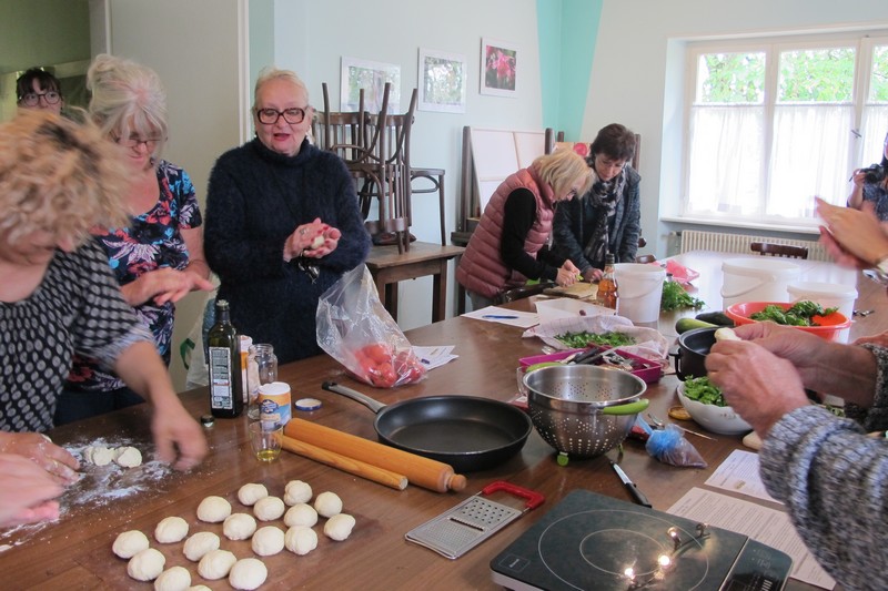 Samedi 7 octobre : l'animation culinaire "Du jardin à l'assiette". Première séance autour du thème "Cuisine d'ailleurs". Au menu proposé par Zarife, des plats turcs : börek et ezmé. Fraichement cueillis au jardin, feuilles de bette, tomates, oignons, poivrons et piments, garnissaient de fines galettes. Un régal pour nos papilles peu habituées aux plats épicés.