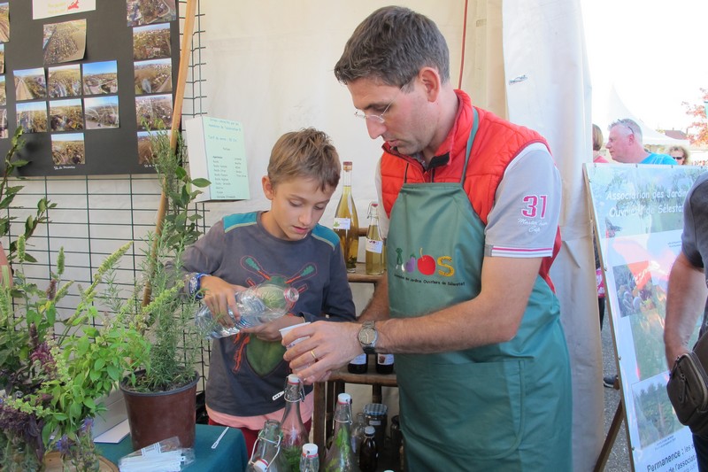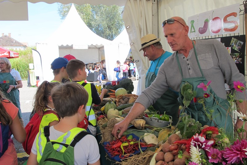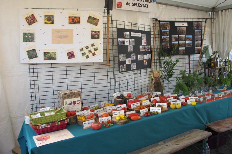 Dans l’après-midi, les jardiniers de l’AJOS exposaient leur récolte du jour et concouraient pour l’élection des plus beaux paniers de fruits, fleurs et légumes du jardin. Les paniers étaient riches et variés. Courgettes, concombres, poivrons, tomates côtoyaient carottes, betteraves, pommes de terre, oignons. Mûres, lavatères et dahlias apportaient leurs touches de couleur. Olivier LUMANN, Patrick et Éliane TASSIN, Christiane DANTZER, ainsi que Marguerite et Alfred STOCK ont été récompensés par un bon d’achat de 15€ à valoir chez un maraîcher sélestadien. Voir la page consacrée à ce concours.