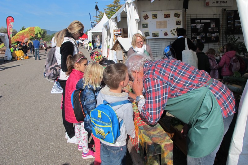 Les 22, 23 et 24 septembre, l'AJOS tenait un stand au salon "Saveurs et soleil d'automne" une manifestation sélestadienne d'envergure. Le vendredi 22, les scolaires avaient l'honneur d'inaugurer le stand, testant leur odorat au travers d'un jeu imaginé par Claude, identifiant un légume au toucher et soufflant son nom à Christiane, Nelly ou Michel.