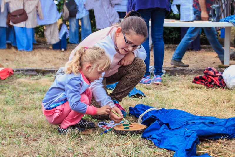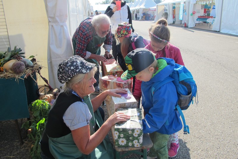 À l’heure du goûter, l’animation « Contes au jardin » accueillait les tous jeunes jardiniers à l’ombre du gros cerisier pour de belles histoires. Les animatrices de l’association « Lire et faire lire » ont su captiver les enfants par leurs contes et des kamichibaïs dans lesquels se côtoyaient entre autres, un épouvantail triste de devoir faire peur aux oiseaux, transformé par son ami le hérisson en une fleur chatoyante refuge de papillons, une princesse se métamorphosant en tournesol, et bien entendu la sorcière Ratatouille s’essayant sans succès à la préparation de mixtures pour être la plus belle princesse.