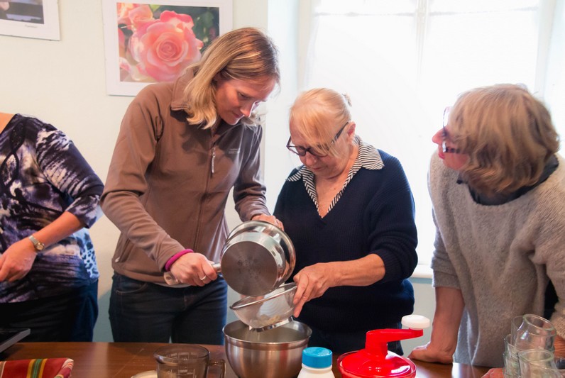 Samedi 9 septembre : l'animation culinaire "Du jardin à l'assiette". Les tartinades sont au menu concocté par Isabelle. La salle est pleine, pour préparer tartinade à la tomate, tapenade d'olives vertes, pesto au basilic servis sur des crackers aux graines ou aux amandes faits maison en 5 minutes. Soupe froide à la tomate et soupe de quetsches à la fleur d'oranger complètent le menu.