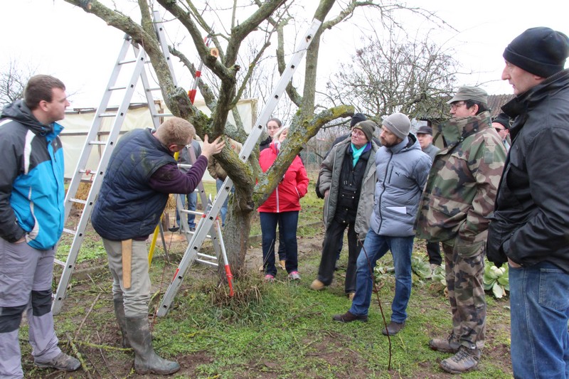 Dimanche 12 février : Cours de taille des arbres fruitiers animé par Patrick KUNTSLER. Malgré le froid, plus de 25 personnes ont assisté à cette animation fort instructive. Consignes pour un traitement des arbres fruitiers dans le respect de l'environnement , taille d'un vieux mirabellier dans le jardin de Pascal, consigne pour la taille en septembre du cerisier de Claire et Nelly, taille d'un très jeune mirabellier dans le jardin de Philippe, taille d'un pommier et d'un cerisier dans le jardin d'Ozcan ont occupé la matinée. Un grand merci à Patrick pour son expertise et son écoute des jardiniers présents.