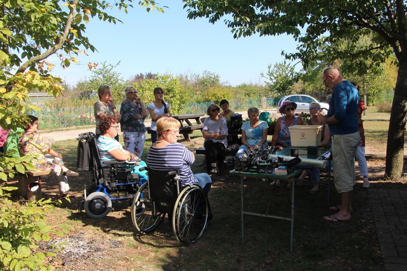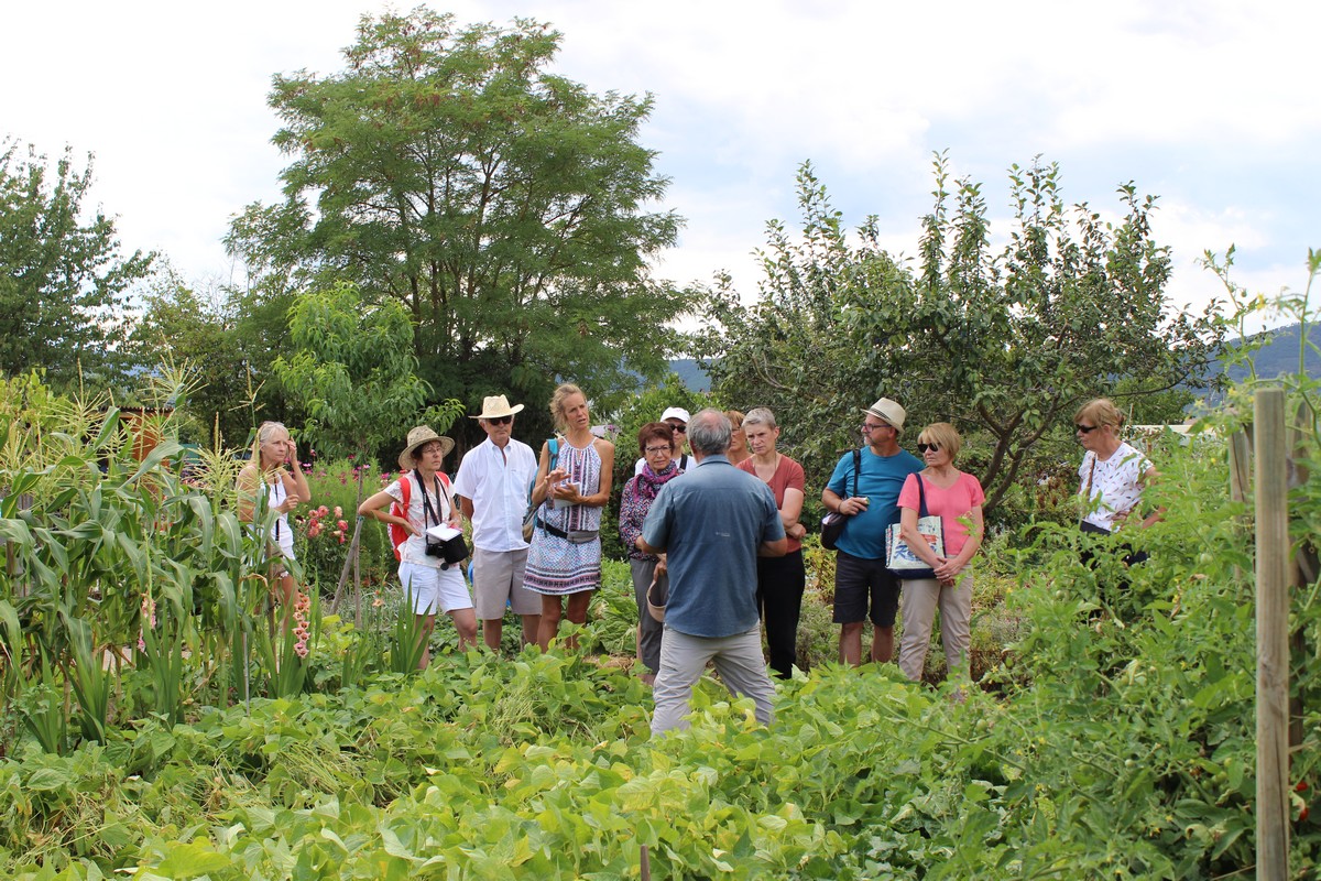 Vient ensuite la visite du jardin de Didier : étaient proposés, un petit tour du jardin bien vert malgré la sécheresse de l'été, le semis de mâche, d'épinard et de navet, des conseils de jardinage et le suivi des semis et bouturages effectués lors des animations précédentes.