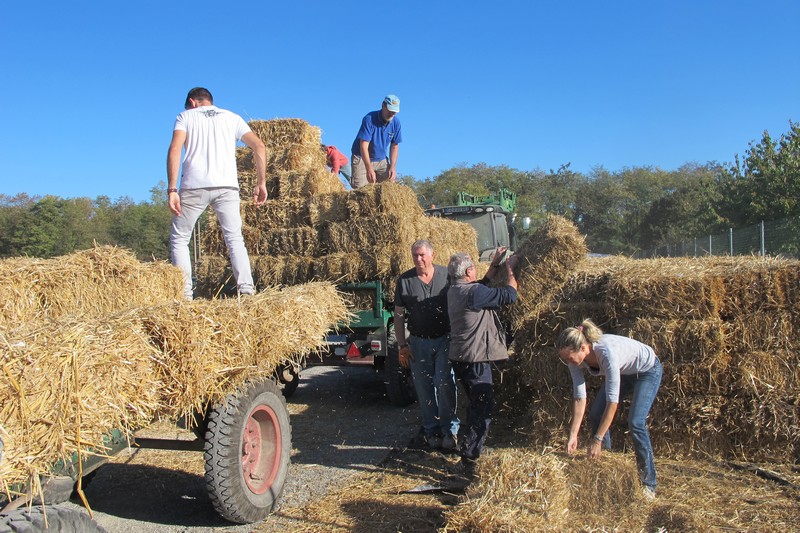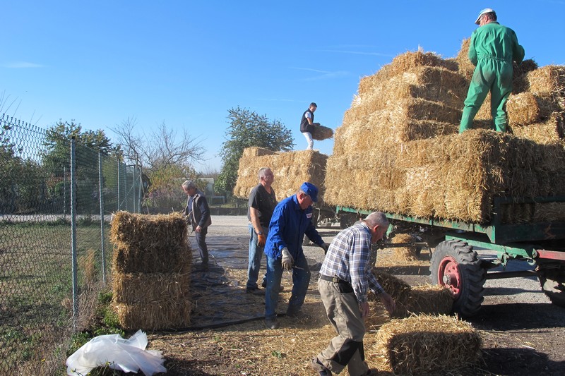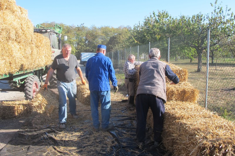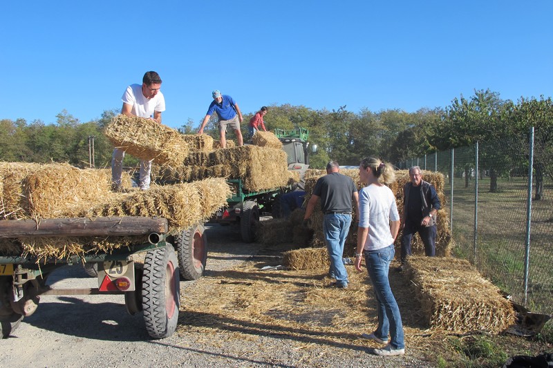 Samedi 13 octobre : Livraison de la commande groupée de bottes de paille. L’opération connait toujours un vif succès, puisqu’après les 419 bottes livrées en avril 2018 (405 bottes en avril 2017), ce sont 360 bottes qui ont été livrées le 13 octobre 2018 (275 bottes livrées en octobre 2017 et 245 bottes en novembre 2016).