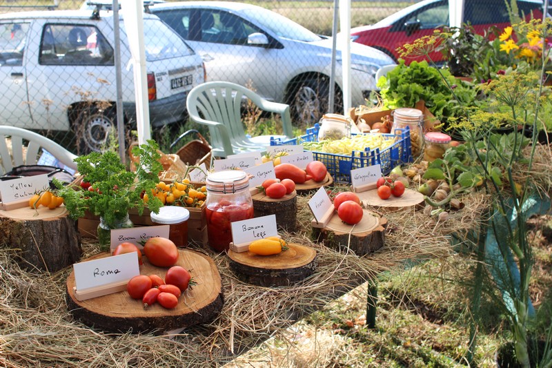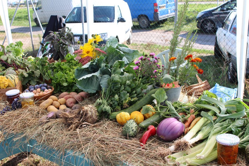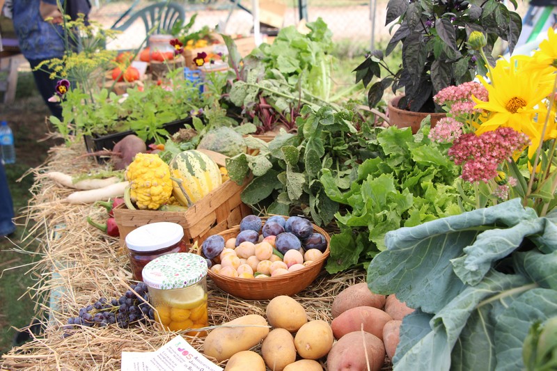 Dans l’après-midi, les jardiniers exposaient leur récolte du jour et concouraient pour l’élection des plus beaux paniers de fruits, fleurs et légumes du jardin. Tomates, courgettes, poivrons, aubergines, concombres, haricots, betteraves, carottes, melons, potimarrons et courges Butternut, pêches et pommes, reines-marguerites et immortelles remplissaient les paniers, preuve de la grande diversité des légumes cultivés dans les jardins de l'AJOS.