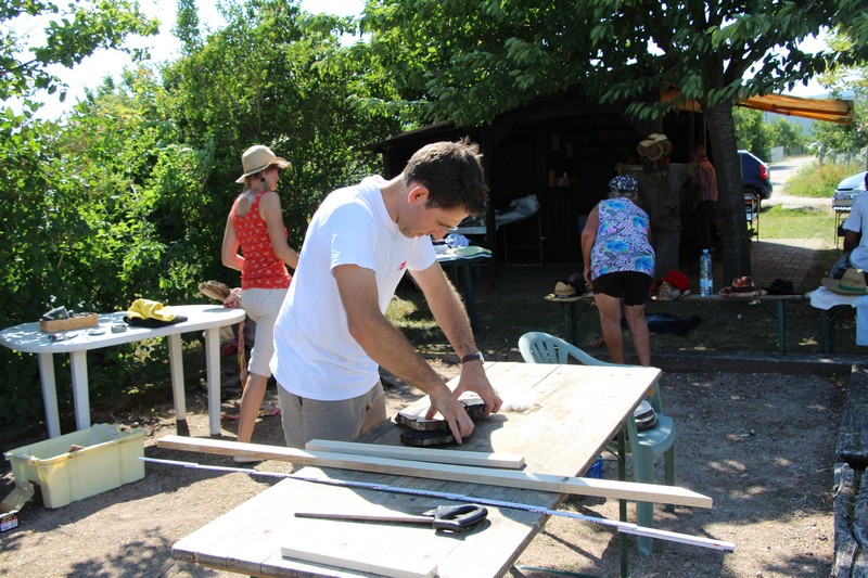 Autre jardin visité, celui de Didier pour suivre l'évolution des cultures depuis la séance précédente. Occasion également de distiller quelques conseils sur les semis et plantations à effectuer durant le mois d'août ou sur le bouturage des rosiers, géraniums, romarins ou lauriers roses. La séance jardinage s’est achevée par la dégustation d’infusions froides aux basilics citron, cannelle et réglisse, trois variétés parmi les dix cultivées dans le jardin.