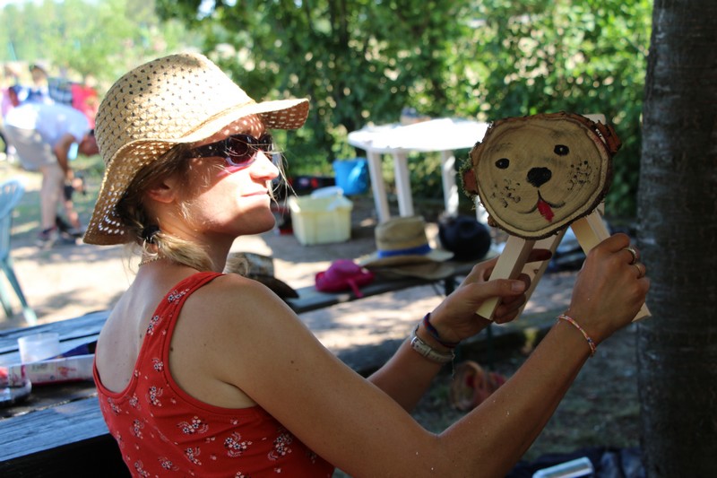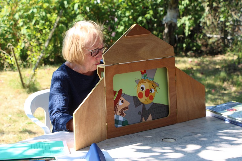 À l’heure du goûter, l’animation « Contes au jardin » accueillait les tous jeunes jardiniers à l’ombre du gros cerisier pour de belles histoires. Les animatrices de l’association « Lire et faire lire » ont su captiver les enfants par leurs contes et des kamichibaïs dans lesquels se côtoyaient entre autres, un épouvantail triste de devoir faire peur aux oiseaux, transformé par son ami le hérisson en une fleur chatoyante refuge de papillons, un ver de terre qui rêvait de devenir ver luisant, un jeune corbeau invité par l'épouvantail à se cacher sous son chapeau pour échapper au fermier dont il ravageait le champ, ou encore un arrosoir qui pleurait à chaudes larmes aux pieds des valérianes.