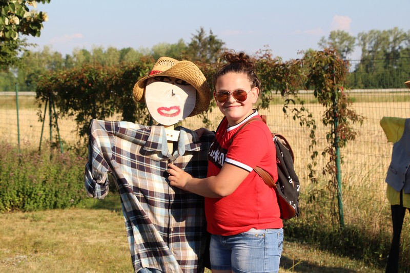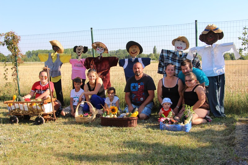 À partir de 15 heures jeunes et … moins jeunes étaient invités à confectionner des épouvantails avec l’aide d’Isabelle, Christiane, Jérôme et Gérard. Vieux chapeaux, chemises hors d’âge, pantalons rapiécés ont donné vie à ces gardiens du potager qui, après l’exposition, ont trouvé leur place dans les jardins de l’AJOS.