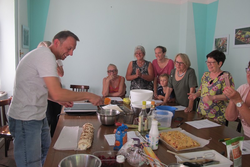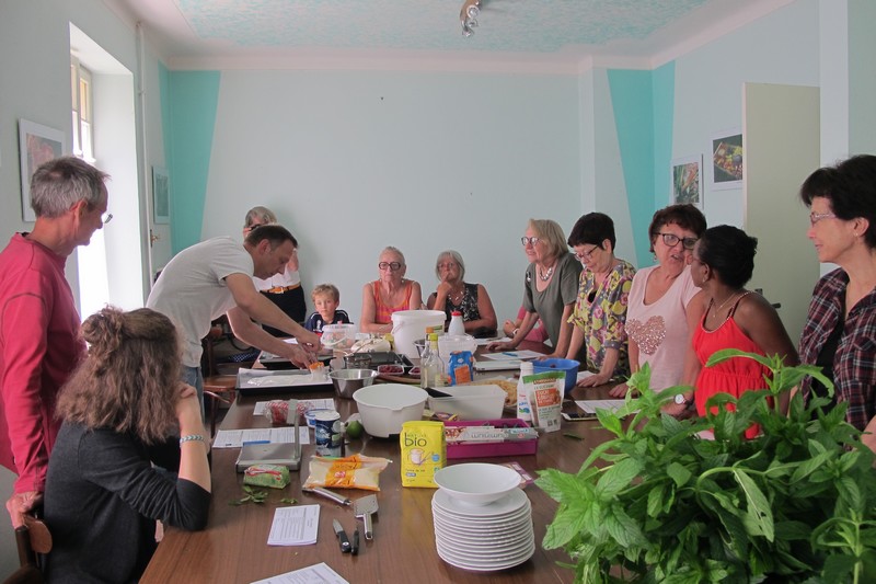 Samedi 8 septembre : "Du jardin à l'assiette", l'animation culinaire de l'AJOS . La séance est animée par Hervé, notre pâtissier qui sait partager sa passion avec les participant(e)s.