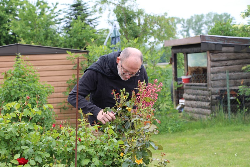 Samedi 2 juin : L'animation jardinage pratique "1h au jardin". Nous avons commencé par une visite du jardin de Gérard, avant qu'il ne sème des haricots et repique des poireaux. L'animation s'est poursuivie dans le jardin de Didier. Jardinage pratique au programme avec taille des tomates, taille des rosiers, lutte biologique contre les pucerons, thrips, aleurodes ..., préparation de purin d'ortie et de consoude, taille de fructification des melons, taille des rosiers, culture de patates douces, etc.