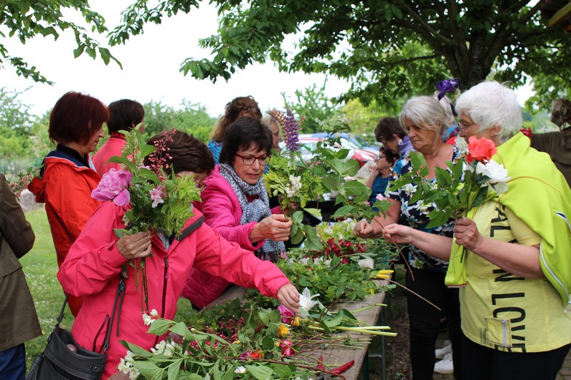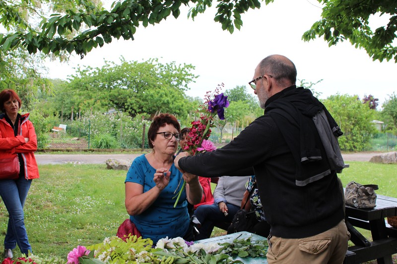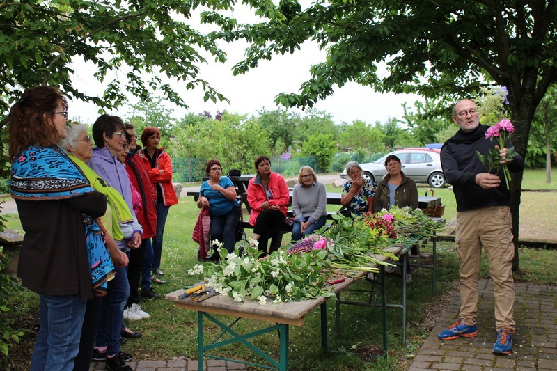 Lundi 14 mai : Animation "Un bouquet de fleurs du jardin" avec les conseils et l'expertise de Christophe, le fleuriste Sélestadien "Boule de mousse". L'animation commence par un petit tour dans nos jardins pour y cueillir des fleurs nombreuses et variées, quelques branches de sureau, de charme ou de lilas.
