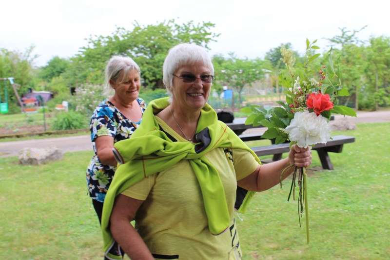 Dans l’après-midi, les jardiniers de l’AJOS exposaient leur récolte du jour et concouraient pour l’élection des plus beaux paniers de fruits, fleurs et légumes du jardin. Courgettes, concombres, salades, betteraves, artichauts, pommes de terre, carottes, haricots, têtes d’ail et bulbes d’oignons ou même chou-fleur côtoyaient fraises, framboises, groseilles, mûres et cassis, roses, brins de lavande et hémérocalles pour composer des paniers riches en couleurs … et en saveurs. Tous les jardiniers présents étaient invités à déposer leur bulletin dans l’urne afin de désigner les plus beaux paniers. Jean-Michel MARTIN, Pascal SCHWOERTZIG, Denis DEIBER et Élodie MILLHOUSE ont été récompensés par un bon d’achat chez un maraîcher sélestadien. Voir la page consacrée à ce concours. Le barbecue qui clôturait les animations était l’occasion pour les jardiniers d’un nouveau moment de convivialité et d’échanges, avant de se donner rendez-vous les 28 juillet et 1er septembre pour un nouveau concours et de nouvelles animations.