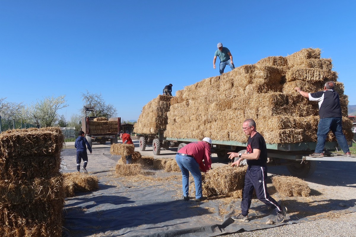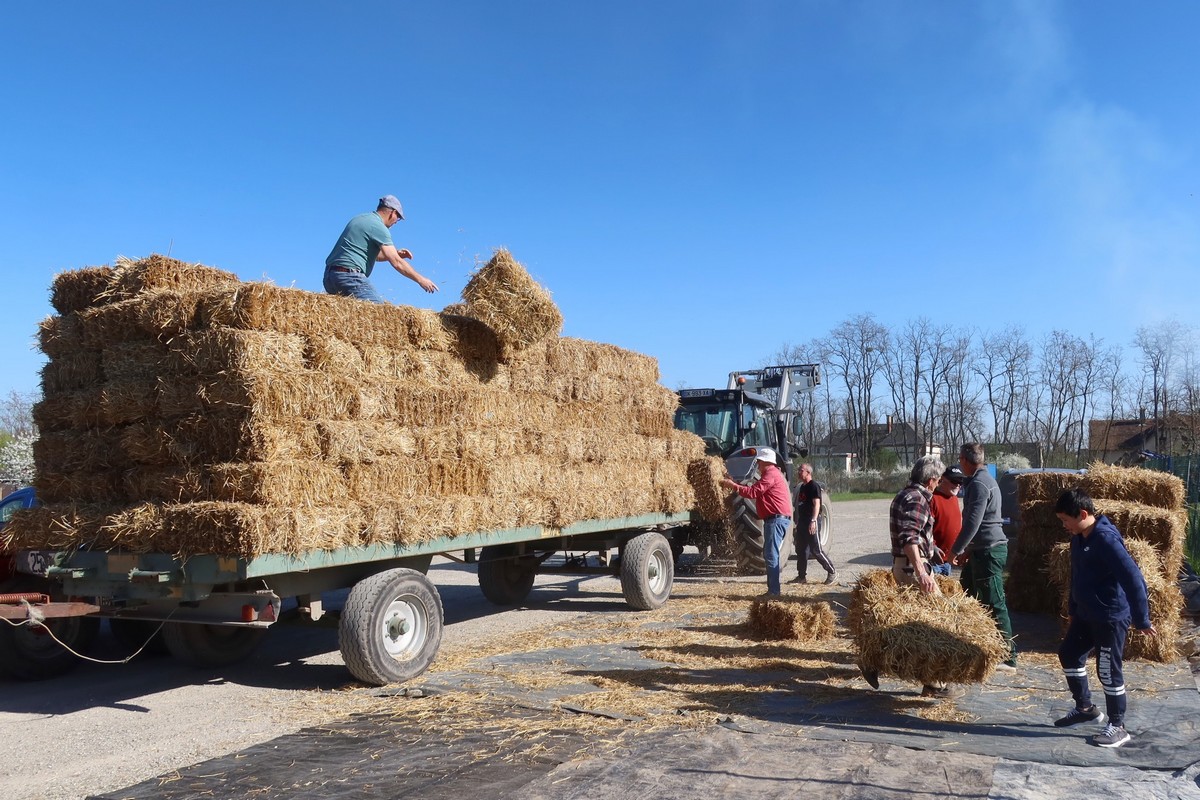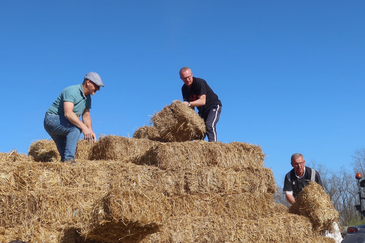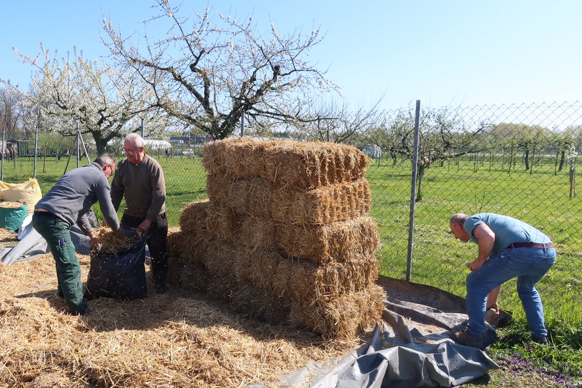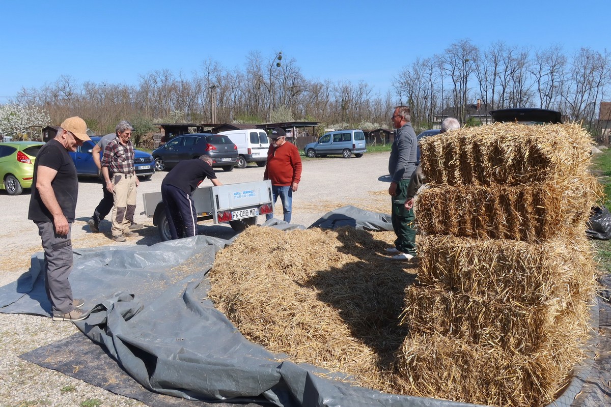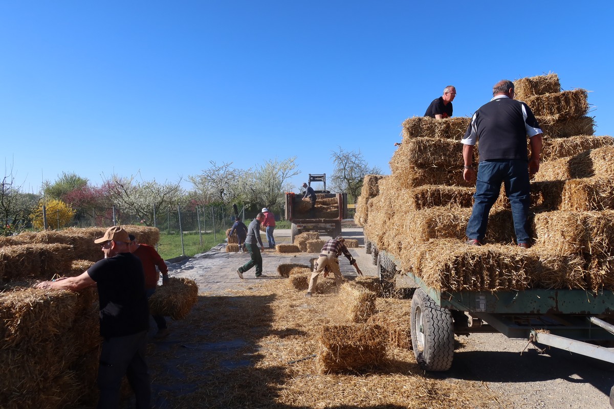 5 avril : Livraison des bottes de paille. Ce sont 590 bottes qui sont distribuées dans les jardins par les bénévoles de l'association, soit plus d'une centaine de plus qu'au printemps 2024.
