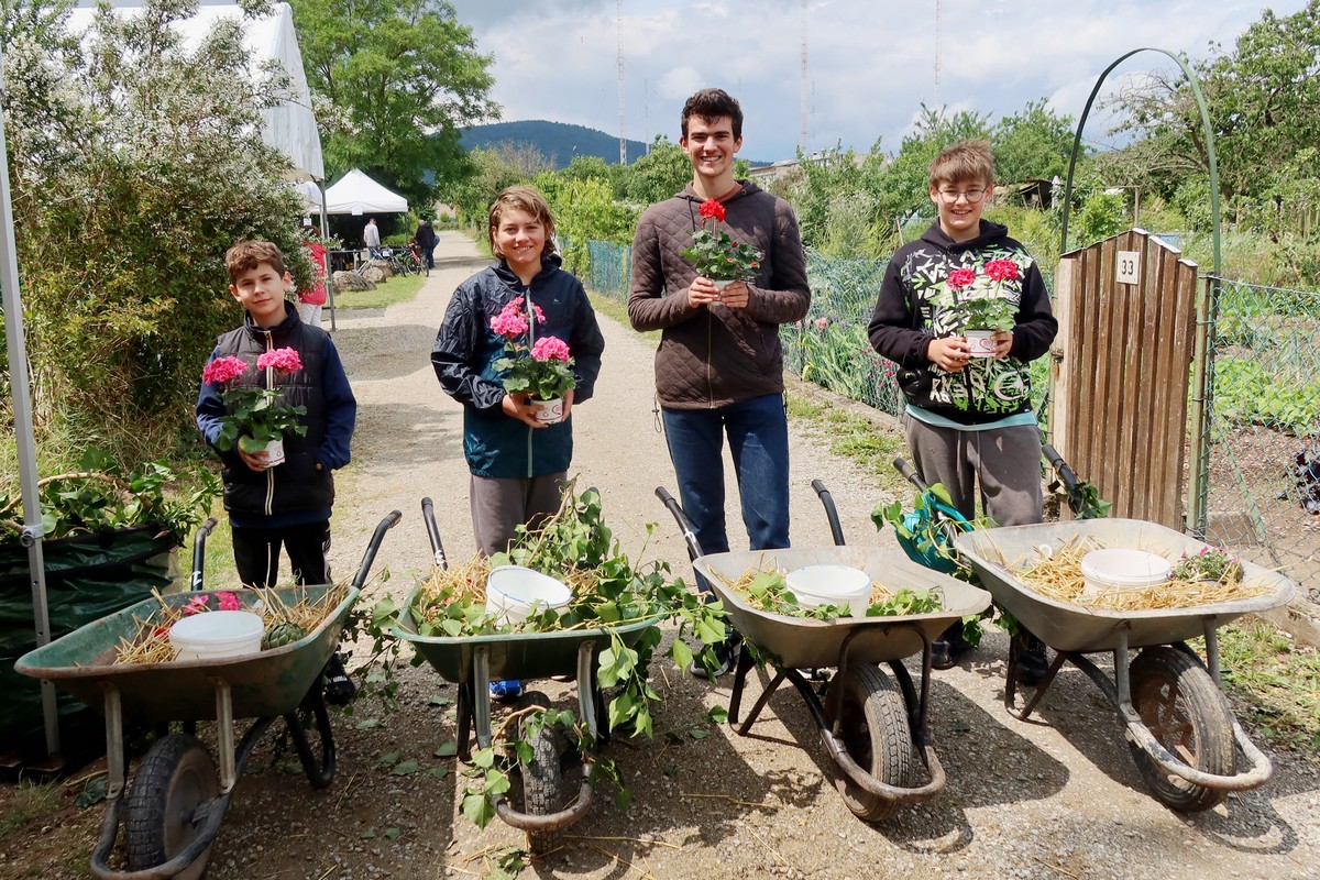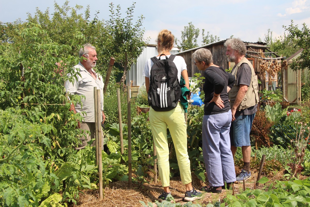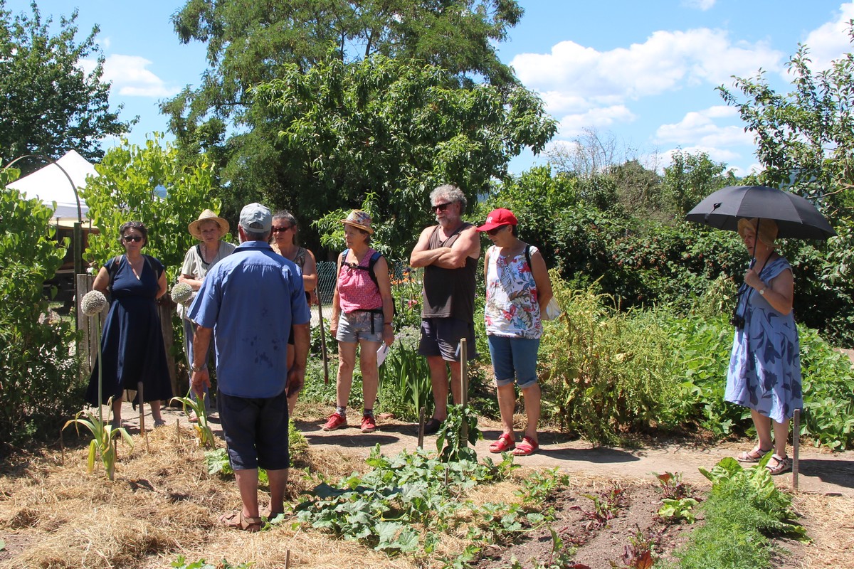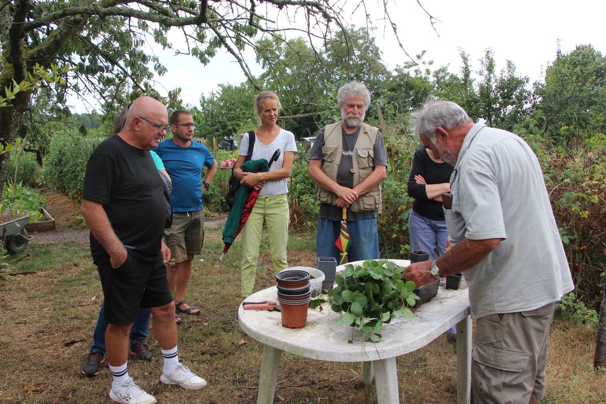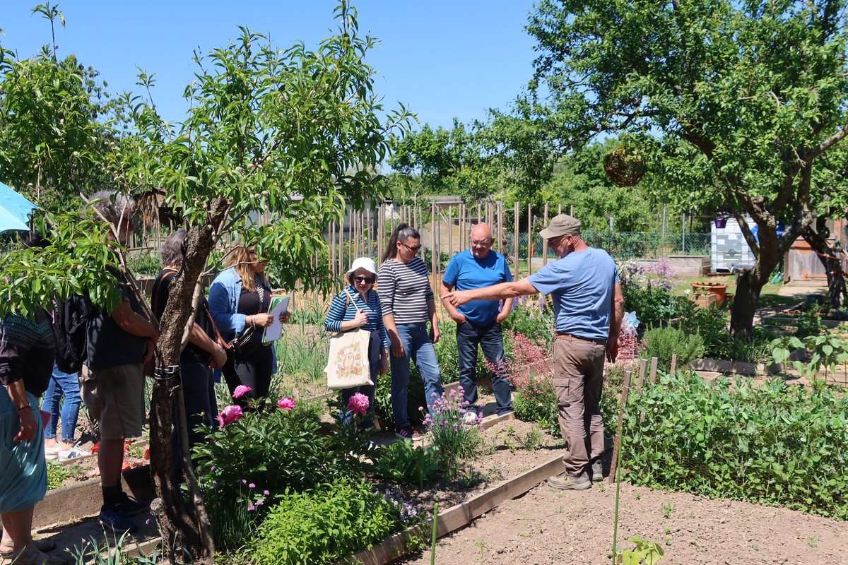 28 juin : Premier des trois après-midi festifs de la saison estivale. L'après-midi débute par l'animation jardinage pratique "1h au jardin". Malgré la canicule, quelques jardinières et jardiniers ont répondu à l'invitation. Petit tour dans le jardin de Didier remis en état après un certain laisser-aller en début de saison, lié aux activités du 100ème anniversaire de l'association. Les dahlias sont en avance par rapport à l'an passé, car ils ont été forcés dans la serre au tout début du printemps. La verveine de Buenos Aires a envahi la planche de fraisier, occasion pour les visiteurs d'en récupérer de jeunes plants. Les oignons, ails et échalotes attendent d'être récoltés, le semis de radis japonais sort de terre, les carottes destinées à être ensilées pour l'hiver sont en train de lever, jouxtant des haricots verts semés en godets et tout juste mis en terre. Sous le cerisier, les semis de choux, de scaroles, chicorées frisées réalisés en mini-mottes tentent de germer malgré les températures caniculaires. Didier évoque l'entretien des tomates et les semis pouvant être effectués en ce début d'été avant de semer en mini-mottes de la chicorée frisée "fine de Louviers". Partage de quelques replants de fleurs, de quelques pieds de sauge décorative avec son feuillage rouge et il est temps de rejoindre le stand où Catherine propose de confectionner de superbes "cartes végétales". Des habitué(e)s, mais également des néophytes composent petits tableaux et marques-pages à partir de pétales de fleurs, brindilles, feuilles. Avec douceur et patience, Catherine guide, suggère, encourage. Les réalisations sont glissées bien à l'abri dans des enveloppes par les participant(e)s ravi(e)s par cette animation. Déjà les premiers paniers sont sur le présentoir pour le concours "Fleurs, fruits et légumes du jardin". 18h, vient le moment de la désignation des plus beaux d'entre eux. Samantha et Thomas BONNET, Marguerite et Alfred STOCK, Alice WITTMER, Fahid HODZIC sont récompensés par des bons d'achat de 15€ offert par le maraicher sélestadien "Le jardinier", bld de Nancy. Jardiniers et jardinières peuvent maintenant se restaurer. Roland et Raymond proposent saucisses blanches ou merguez grillées au barbecue par Gérard, Christiane et Patrick tiennent le stand café-pâtisseries-glaces, tandis que Jean-Paul tient la buvette, très fréquentée et que Fabrice et Valentin assurent l’approvisionnement. Un léger souffle d'air sur l'air de loisirs du Galgenfeld adoucit les températures caniculaires, permettant de terminer un bel après-midi dans la convivialité. Rendez-vous est donné le 26 juillet pour le second après-midi festif de la saison 2025.