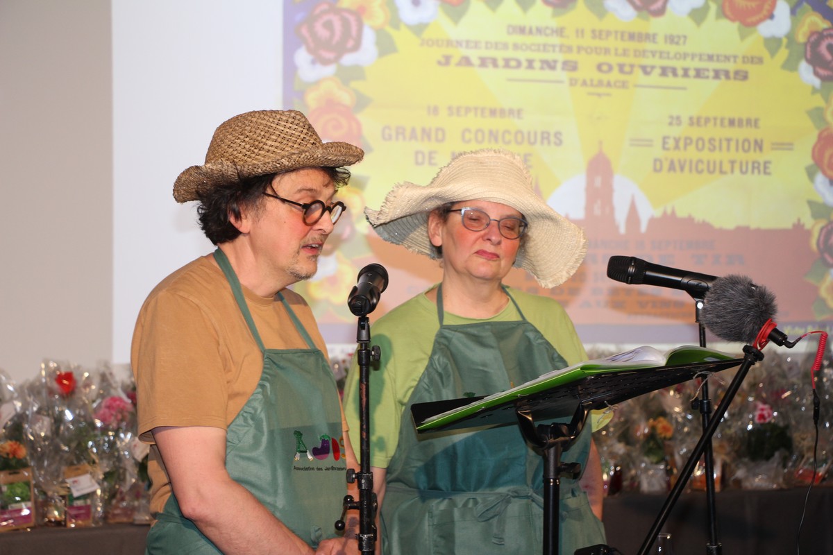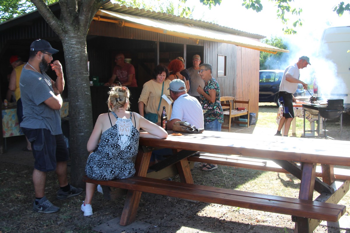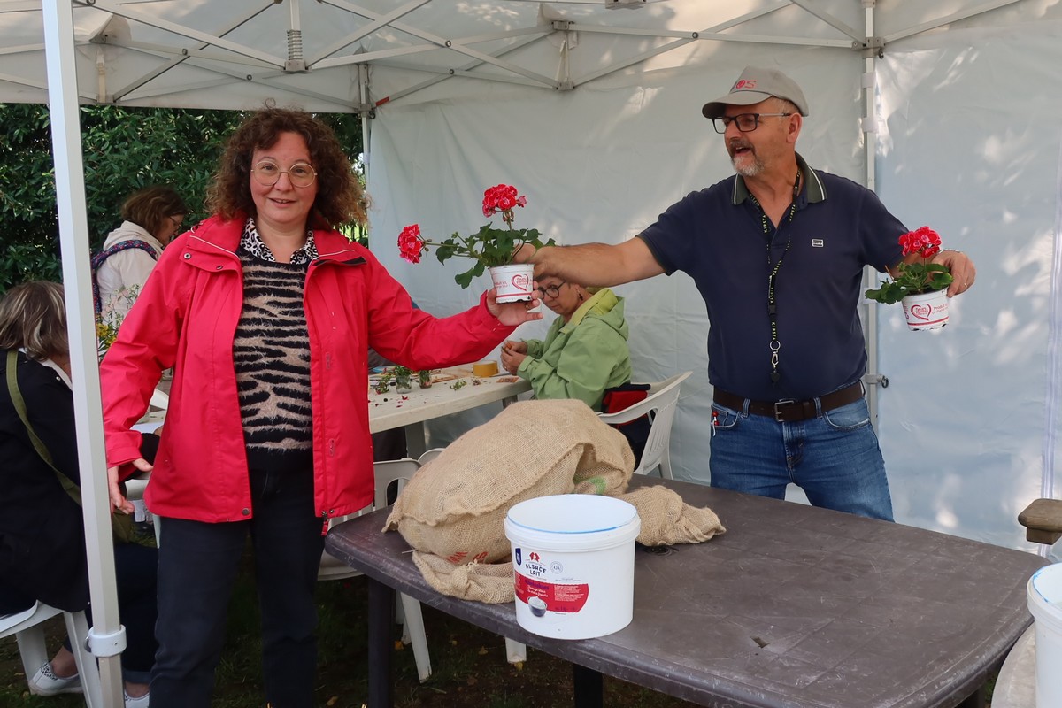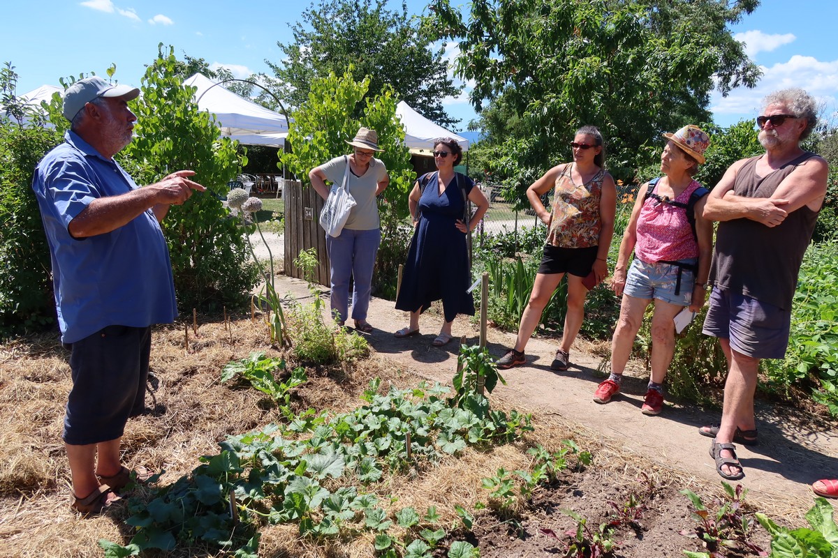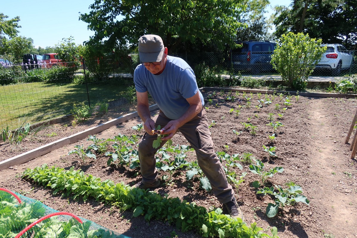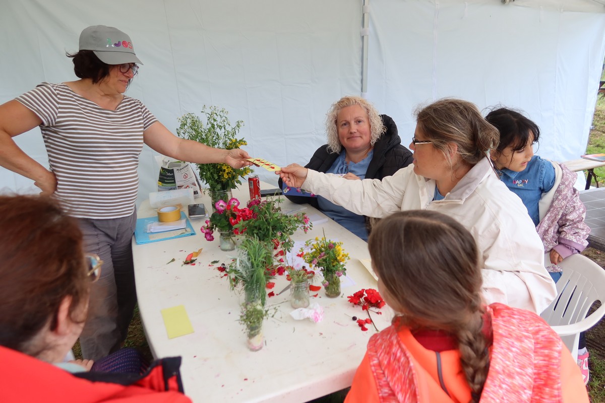 28 juin : Premier des trois après-midi festifs de la saison estivale. L'après-midi débute par l'animation jardinage pratique "1h au jardin". Malgré la canicule, quelques jardinières et jardiniers ont répondu à l'invitation. Petit tour dans le jardin de Didier remis en état après un certain laisser-aller en début de saison, lié aux activités du 100ème anniversaire de l'association. Les dahlias sont en avance par rapport à l'an passé, car ils ont été forcés dans la serre au tout début du printemps. La verveine de Buenos Aires a envahi la planche de fraisier, occasion pour les visiteurs d'en récupérer de jeunes plants. Les oignons, ails et échalotes attendent d'être récoltés, le semis de radis japonais sort de terre, les carottes destinées à être ensilées pour l'hiver sont en train de lever, jouxtant des haricots verts semés en godets et tout juste mis en terre. Sous le cerisier, les semis de choux, de scaroles, chicorées frisées réalisés en mini-mottes tentent de germer malgré les températures caniculaires. Didier évoque l'entretien des tomates et les semis pouvant être effectués en ce début d'été avant de semer en mini-mottes de la chicorée frisée "fine de Louviers". Partage de quelques replants de fleurs, de quelques pieds de sauge décorative avec son feuillage rouge et il est temps de rejoindre le stand où Catherine propose de confectionner de superbes "cartes végétales". Des habitué(e)s, mais également des néophytes composent petits tableaux et marques-pages à partir de pétales de fleurs, brindilles, feuilles. Avec douceur et patience, Catherine guide, suggère, encourage. Les réalisations sont glissées bien à l'abri dans des enveloppes par les participant(e)s ravi(e)s par cette animation. Déjà les premiers paniers sont sur le présentoir pour le concours "Fleurs, fruits et légumes du jardin". 18h, vient le moment de la désignation des plus beaux d'entre eux. Samantha et Thomas BONNET, Marguerite et Alfred STOCK, Alice WITTMER, Fahid HODZIC sont récompensés par des bons d'achat de 15€ offert par le maraicher sélestadien "Le jardinier", bld de Nancy. Jardiniers et jardinières peuvent maintenant se restaurer. Roland et Raymond proposent saucisses blanches ou merguez grillées au barbecue par Gérard, Christiane et Patrick tiennent le stand café-pâtisseries-glaces, tandis que Jean-Paul tient la buvette, très fréquentée et que Fabrice et Valentin assurent l’approvisionnement. Un léger souffle d'air sur l'air de loisirs du Galgenfeld adoucit les températures caniculaires, permettant de terminer un bel après-midi dans la convivialité. Rendez-vous est donné le 26 juillet pour le second après-midi festif de la saison 2025.