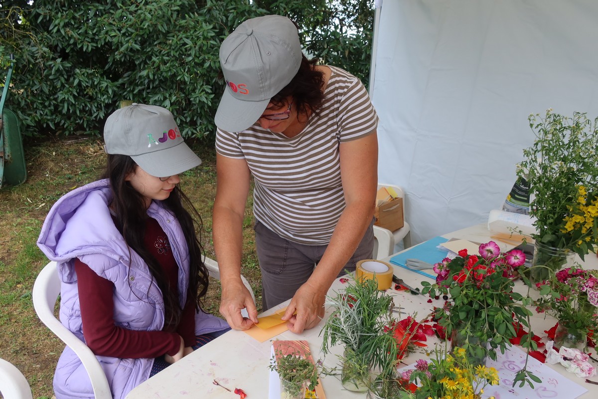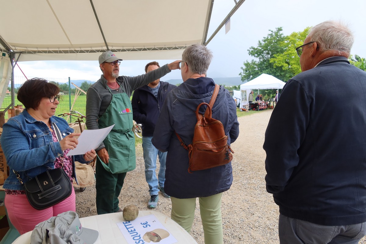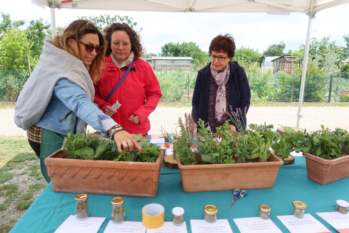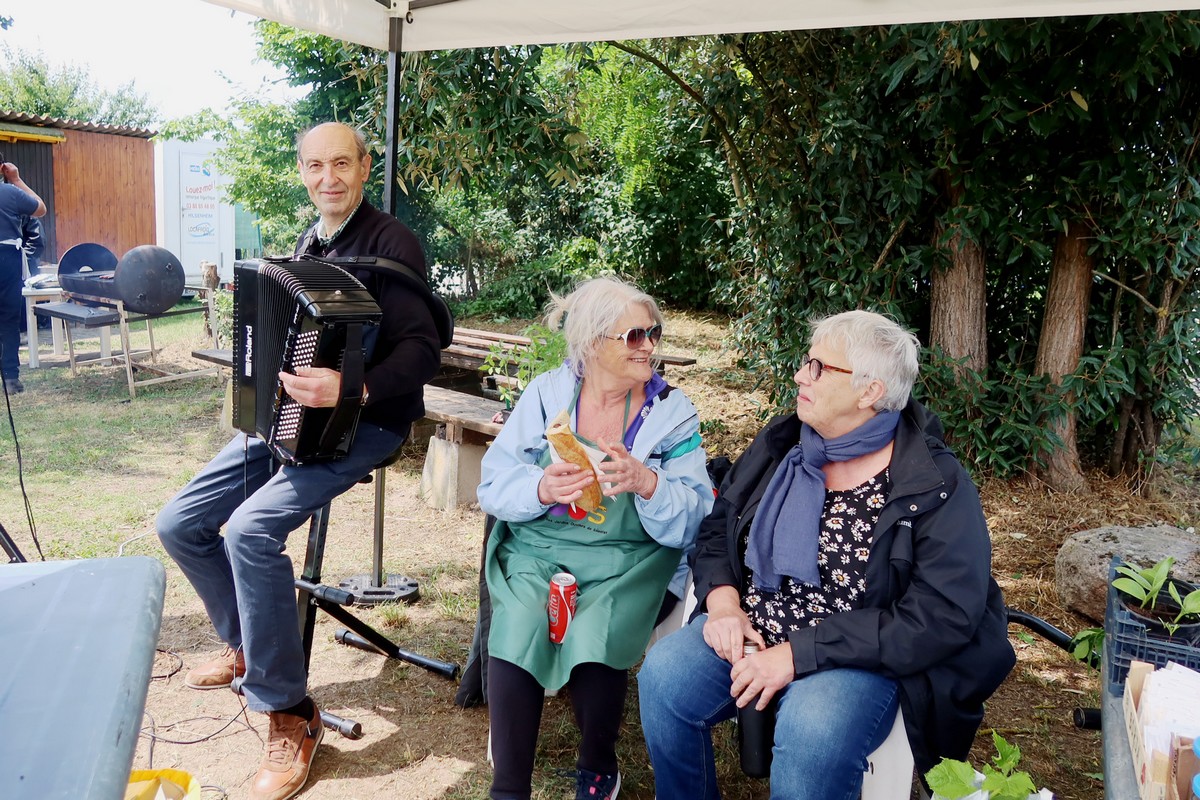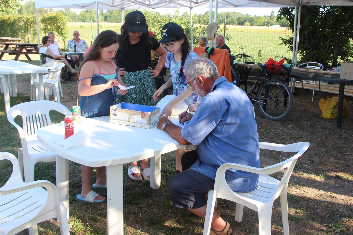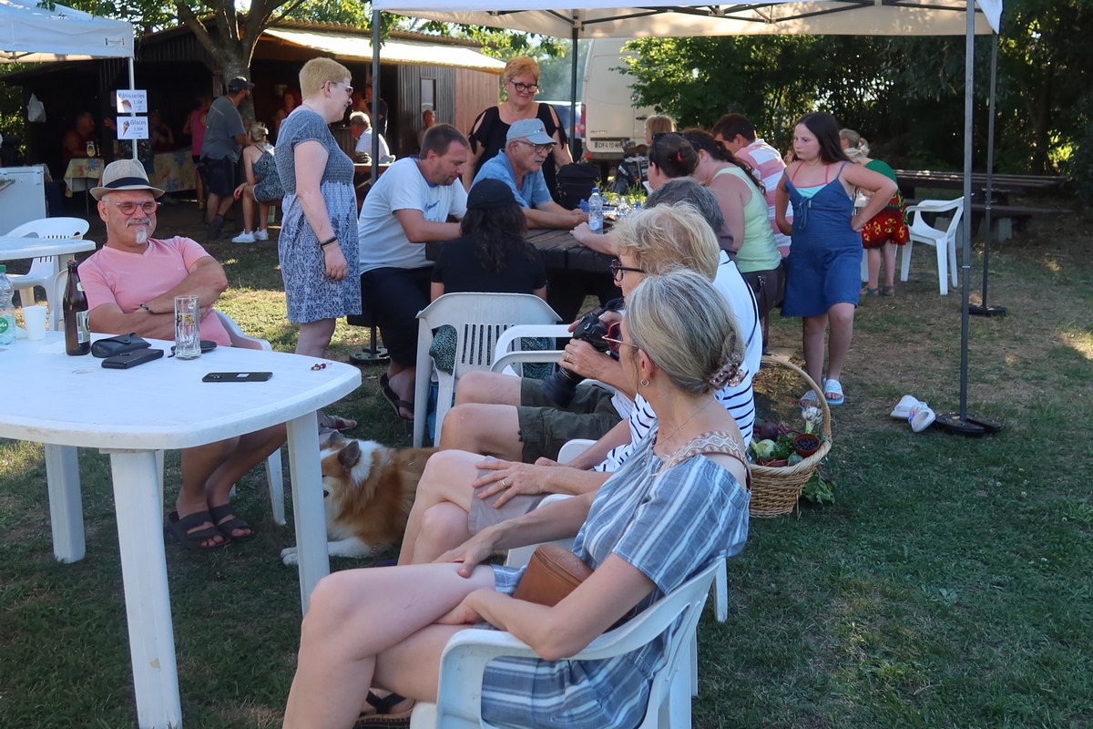 28 juin : Premier des trois après-midi festifs de la saison estivale. L'après-midi débute par l'animation jardinage pratique "1h au jardin". Malgré la canicule, quelques jardinières et jardiniers ont répondu à l'invitation. Petit tour dans le jardin de Didier remis en état après un certain laisser-aller en début de saison, lié aux activités du 100ème anniversaire de l'association. Les dahlias sont en avance par rapport à l'an passé, car ils ont été forcés dans la serre au tout début du printemps. La verveine de Buenos Aires a envahi la planche de fraisier, occasion pour les visiteurs d'en récupérer de jeunes plants. Les oignons, ails et échalotes attendent d'être récoltés, le semis de radis japonais sort de terre, les carottes destinées à être ensilées pour l'hiver sont en train de lever, jouxtant des haricots verts semés en godets et tout juste mis en terre. Sous le cerisier, les semis de choux, de scaroles, chicorées frisées réalisés en mini-mottes tentent de germer malgré les températures caniculaires. Didier évoque l'entretien des tomates et les semis pouvant être effectués en ce début d'été avant de semer en mini-mottes de la chicorée frisée "fine de Louviers". Partage de quelques replants de fleurs, de quelques pieds de sauge décorative avec son feuillage rouge et il est temps de rejoindre le stand où Catherine propose de confectionner de superbes "cartes végétales". Des habitué(e)s, mais également des néophytes composent petits tableaux et marques-pages à partir de pétales de fleurs, brindilles, feuilles. Avec douceur et patience, Catherine guide, suggère, encourage. Les réalisations sont glissées bien à l'abri dans des enveloppes par les participant(e)s ravi(e)s par cette animation. Déjà les premiers paniers sont sur le présentoir pour le concours "Fleurs, fruits et légumes du jardin". 18h, vient le moment de la désignation des plus beaux d'entre eux. Samantha et Thomas BONNET, Marguerite et Alfred STOCK, Alice WITTMER, Fahid HODZIC sont récompensés par des bons d'achat de 15€ offert par le maraicher sélestadien "Le jardinier", bld de Nancy. Jardiniers et jardinières peuvent maintenant se restaurer. Roland et Raymond proposent saucisses blanches ou merguez grillées au barbecue par Gérard, Christiane et Patrick tiennent le stand café-pâtisseries-glaces, tandis que Jean-Paul tient la buvette, très fréquentée et que Fabrice et Valentin assurent l’approvisionnement. Un léger souffle d'air sur l'air de loisirs du Galgenfeld adoucit les températures caniculaires, permettant de terminer un bel après-midi dans la convivialité. Rendez-vous est donné le 26 juillet pour le second après-midi festif de la saison 2025.