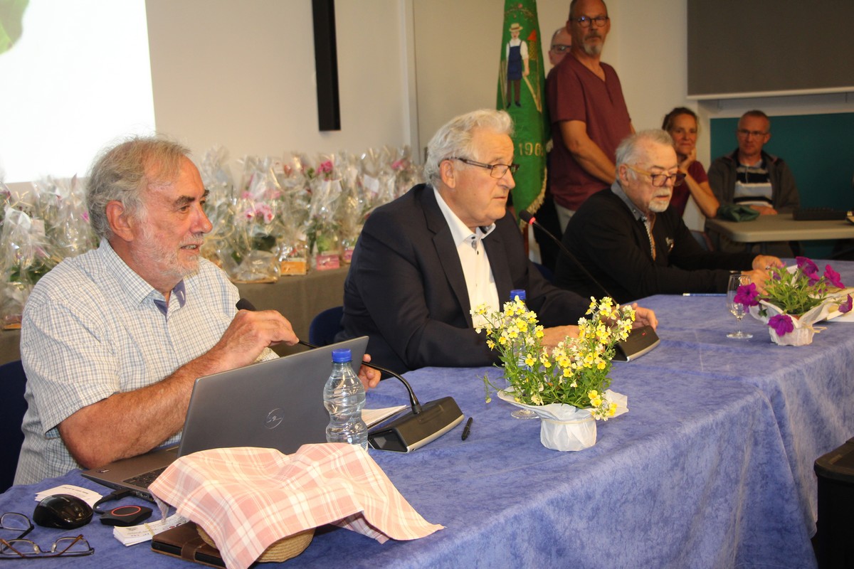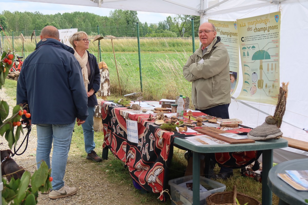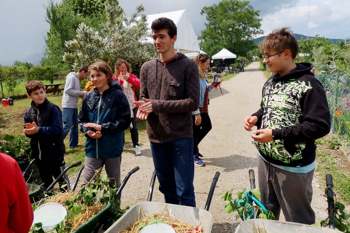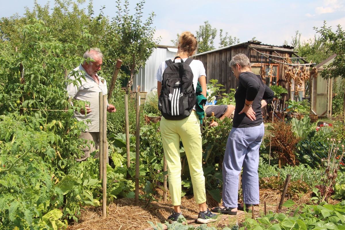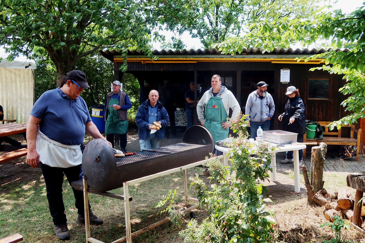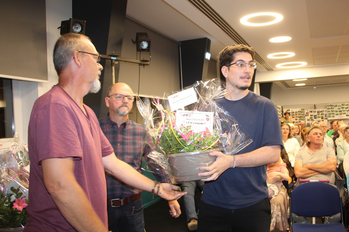 28 juin : Premier des trois après-midi festifs de la saison estivale. L'après-midi débute par l'animation jardinage pratique "1h au jardin". Malgré la canicule, quelques jardinières et jardiniers ont répondu à l'invitation. Petit tour dans le jardin de Didier remis en état après un certain laisser-aller en début de saison, lié aux activités du 100ème anniversaire de l'association. Les dahlias sont en avance par rapport à l'an passé, car ils ont été forcés dans la serre au tout début du printemps. La verveine de Buenos Aires a envahi la planche de fraisier, occasion pour les visiteurs d'en récupérer de jeunes plants. Les oignons, ails et échalotes attendent d'être récoltés, le semis de radis japonais sort de terre, les carottes destinées à être ensilées pour l'hiver sont en train de lever, jouxtant des haricots verts semés en godets et tout juste mis en terre. Sous le cerisier, les semis de choux, de scaroles, chicorées frisées réalisés en mini-mottes tentent de germer malgré les températures caniculaires. Didier évoque l'entretien des tomates et les semis pouvant être effectués en ce début d'été avant de semer en mini-mottes de la chicorée frisée "fine de Louviers". Partage de quelques replants de fleurs, de quelques pieds de sauge décorative avec son feuillage rouge et il est temps de rejoindre le stand où Catherine propose de confectionner de superbes "cartes végétales". Des habitué(e)s, mais également des néophytes composent petits tableaux et marques-pages à partir de pétales de fleurs, brindilles, feuilles. Avec douceur et patience, Catherine guide, suggère, encourage. Les réalisations sont glissées bien à l'abri dans des enveloppes par les participant(e)s ravi(e)s par cette animation. Déjà les premiers paniers sont sur le présentoir pour le concours "Fleurs, fruits et légumes du jardin". 18h, vient le moment de la désignation des plus beaux d'entre eux. Samantha et Thomas BONNET, Marguerite et Alfred STOCK, Alice WITTMER, Fahid HODZIC sont récompensés par des bons d'achat de 15€ offert par le maraicher sélestadien "Le jardinier", bld de Nancy. Jardiniers et jardinières peuvent maintenant se restaurer. Roland et Raymond proposent saucisses blanches ou merguez grillées au barbecue par Gérard, Christiane et Patrick tiennent le stand café-pâtisseries-glaces, tandis que Jean-Paul tient la buvette, très fréquentée et que Fabrice et Valentin assurent l’approvisionnement. Un léger souffle d'air sur l'air de loisirs du Galgenfeld adoucit les températures caniculaires, permettant de terminer un bel après-midi dans la convivialité. Rendez-vous est donné le 26 juillet pour le second après-midi festif de la saison 2025.